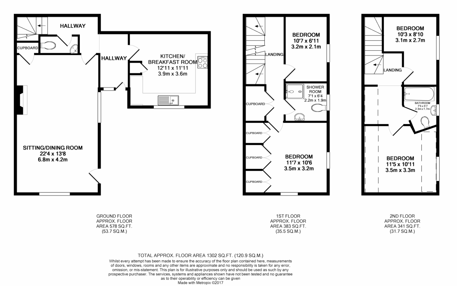 On the first floor is the master bedroom, with views of the Church. There is second bedroom and shower room. On the top floor are two further bedrooms and a bathroom.
