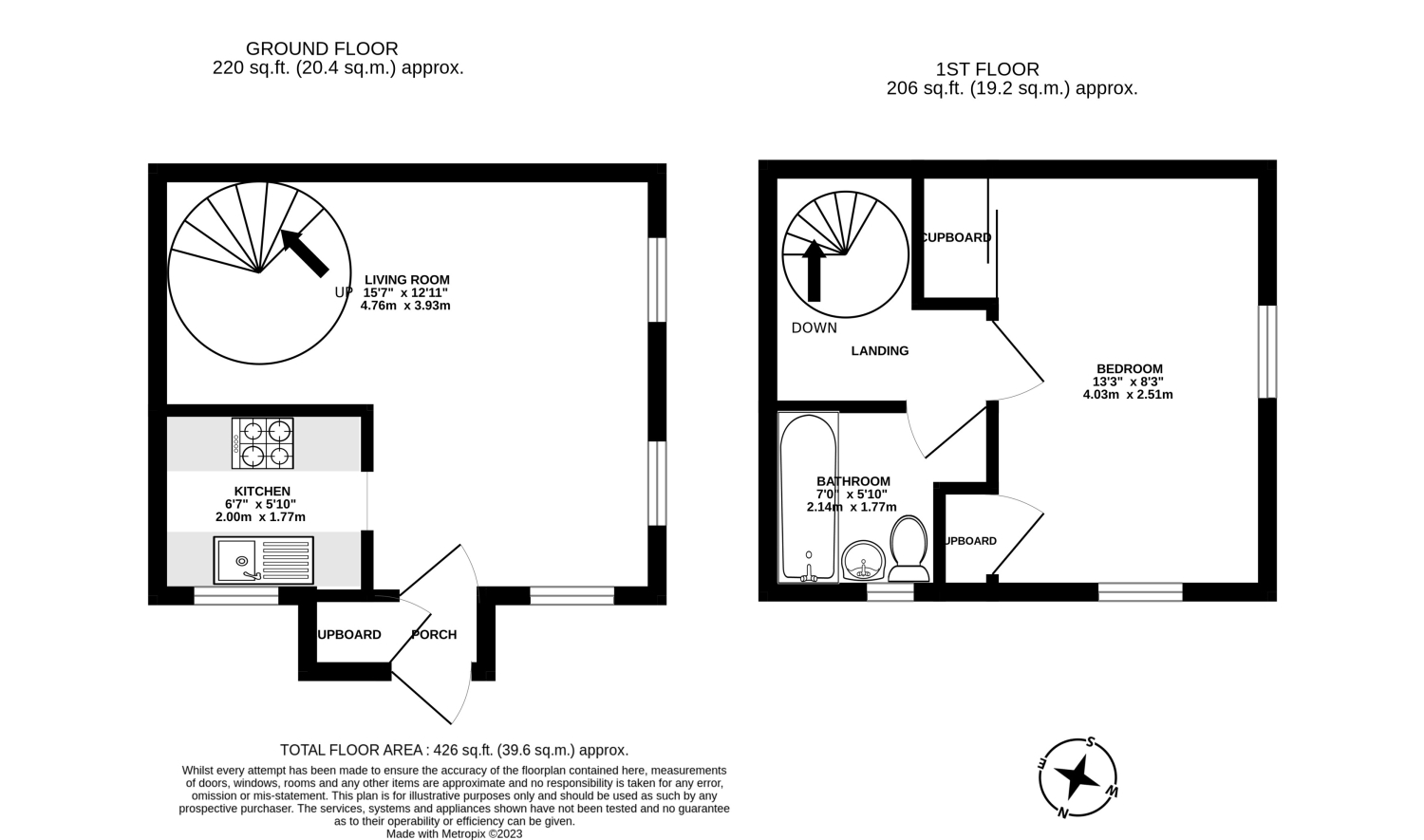 Set side on to the road, the property is approached via a small pathway leading to the private front garden. Upon entering, there is a sitting / dining room with a spiral staircase to the first floor. There is also kitchen with a range of base and eye-level units and a washing machine, oven oven and hob.