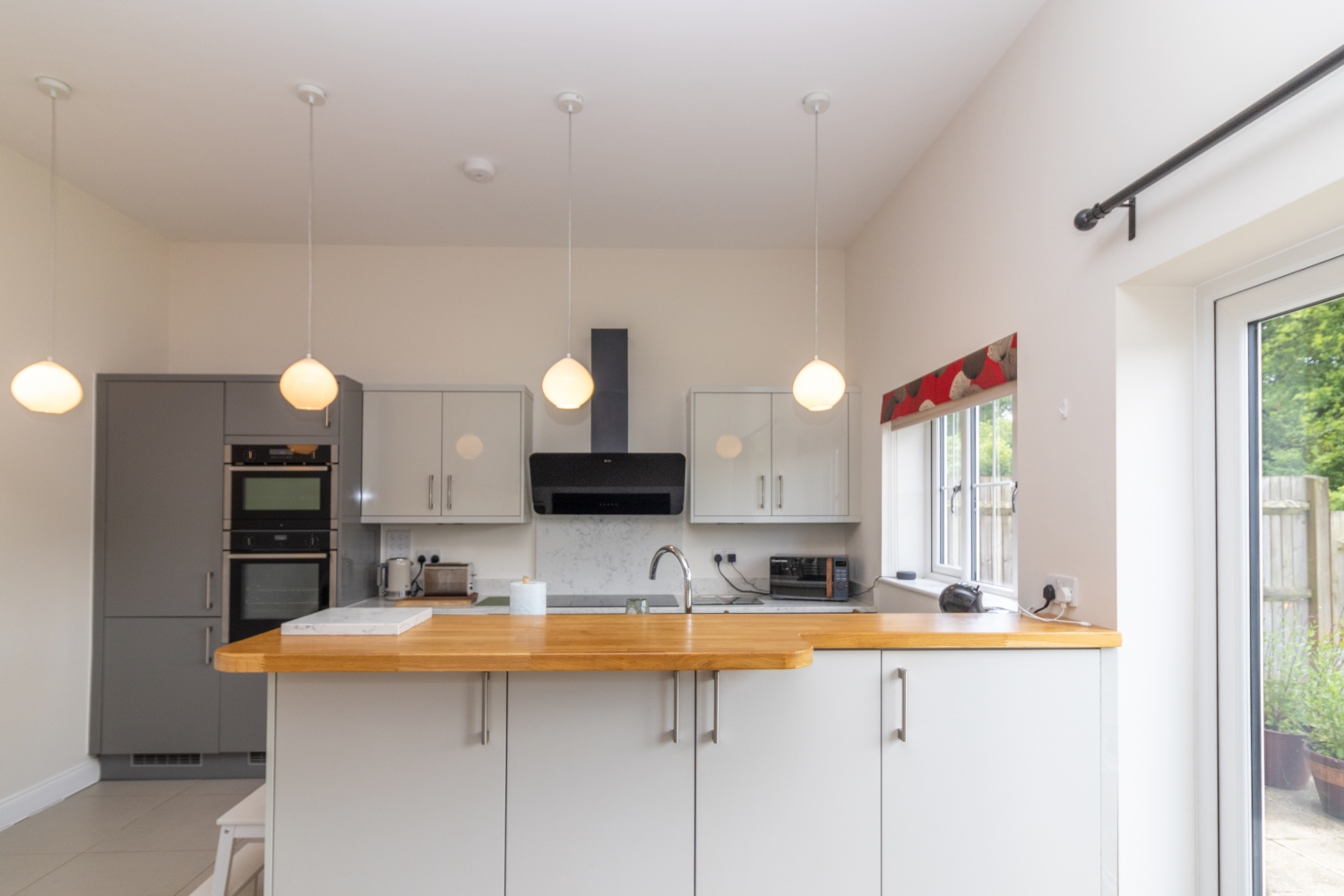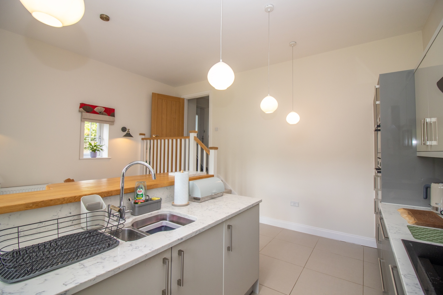 Upstairs, the master bedroom features built-in wardrobes and an en-suite shower room. There are two further bedrooms and a family bathroom.