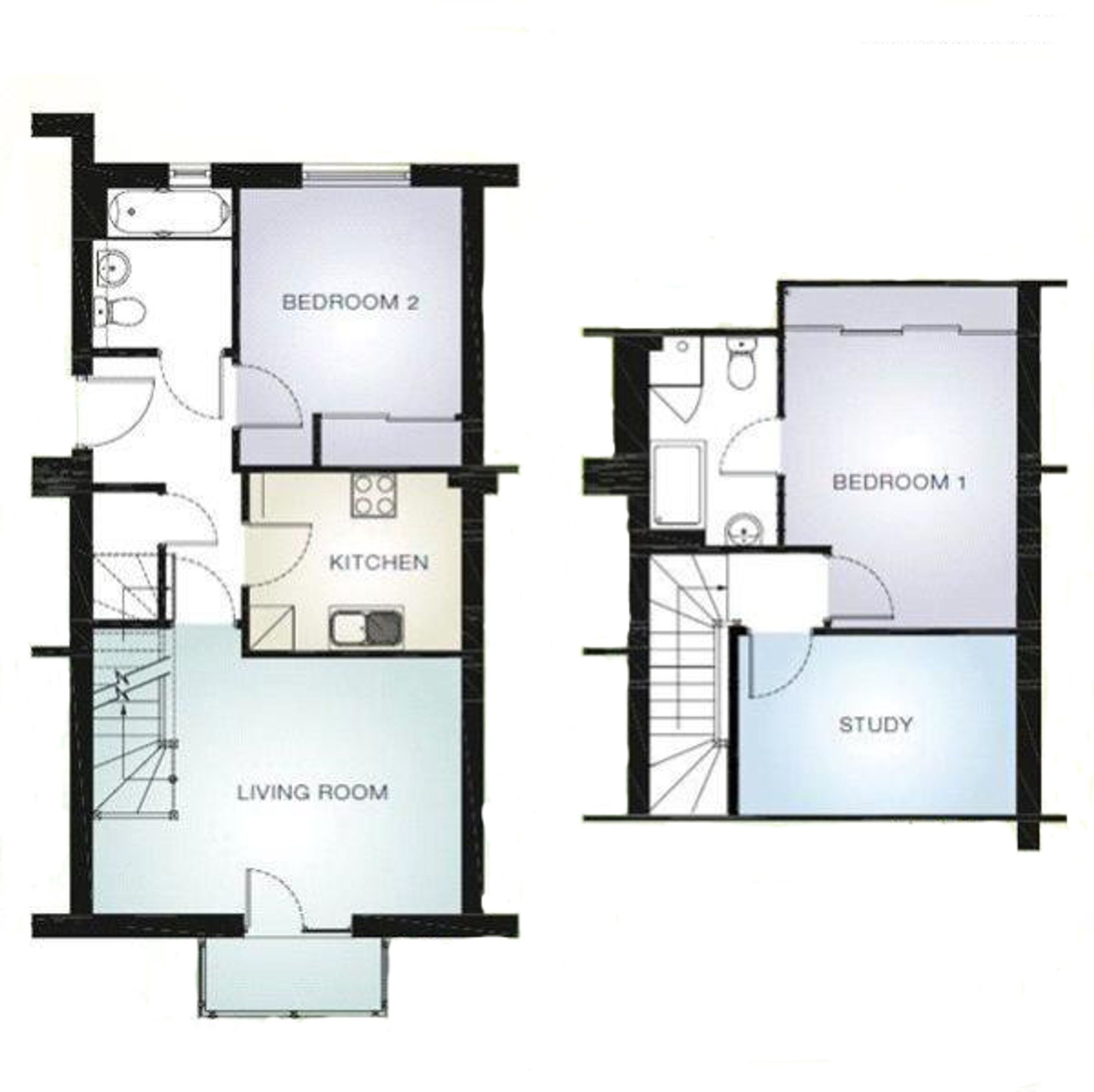 - Two bedrooms, two bathrooms