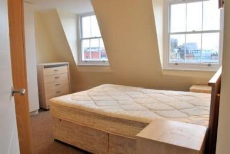 Located on the top floor this spacious apartment offers two double bedrooms which are carpeted (one with en suite) and an office/study room. There is an open plan spacious lounge/kitchen with period features that leads out on to the private balcony with gorgeous views of the city and bathroom with bath and shower.