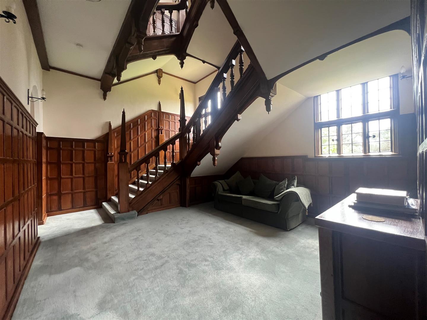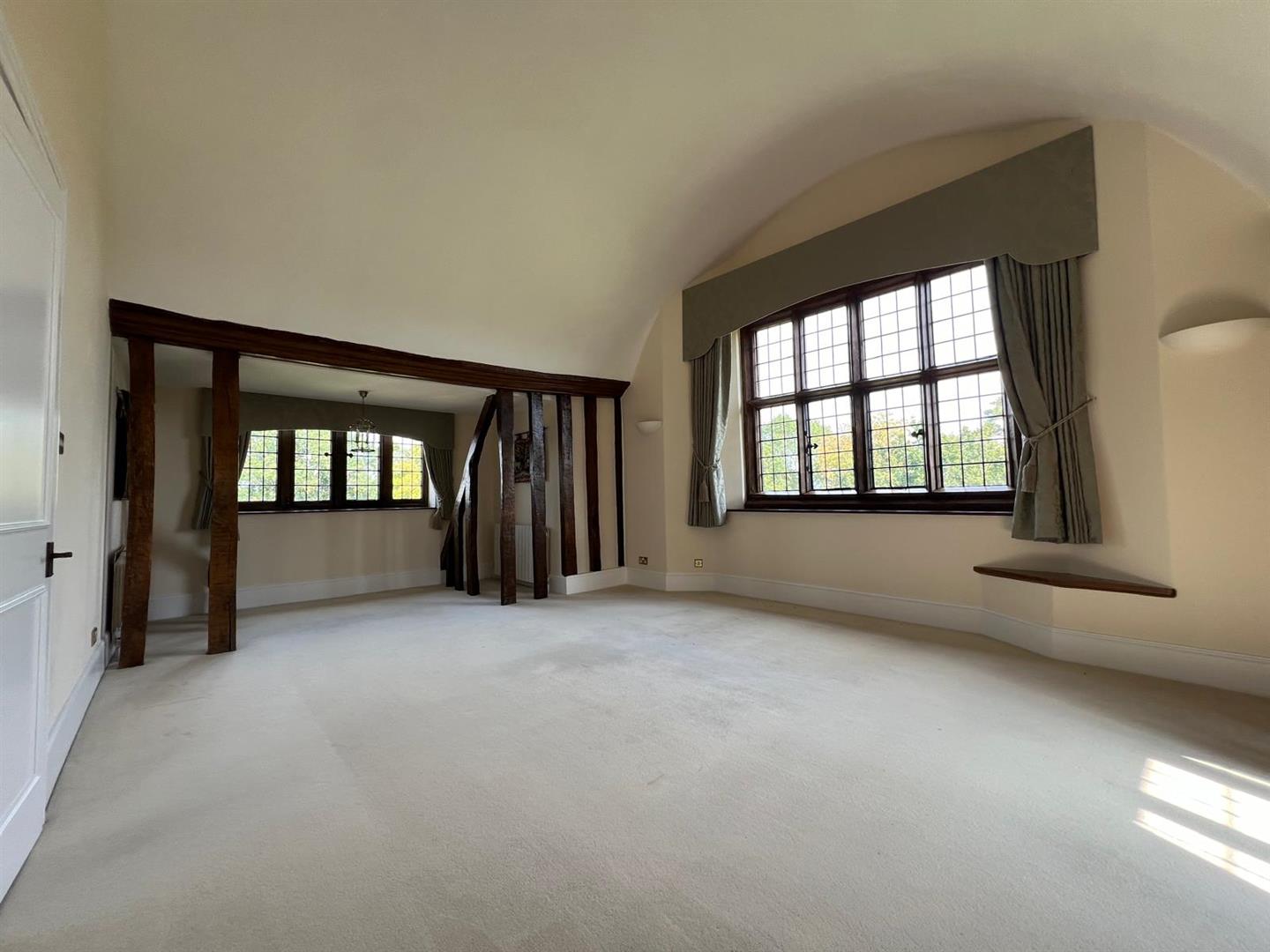 This fabulous apartment is approached from a impressive staircase that has its very own landing area. On entering the apartment you feel that you have been transported back in time with many original features and a magnificent living/dining room with an arched and vaulted ceiling giving a giving a superb feeling of space, there are also large triple aspect windows having views over the grounds and countryside. The master bedroom is huge with a raised platform at the far end for a double bed, there a an impressive original red brick fireplace and exposed timbers, range of fitted wardrobes along one wall. Off the bedroom there is an ensuite bathroom. The second bedroom also has a raised platform for a double bed, splendid views and a brand new ensuite shower room.
