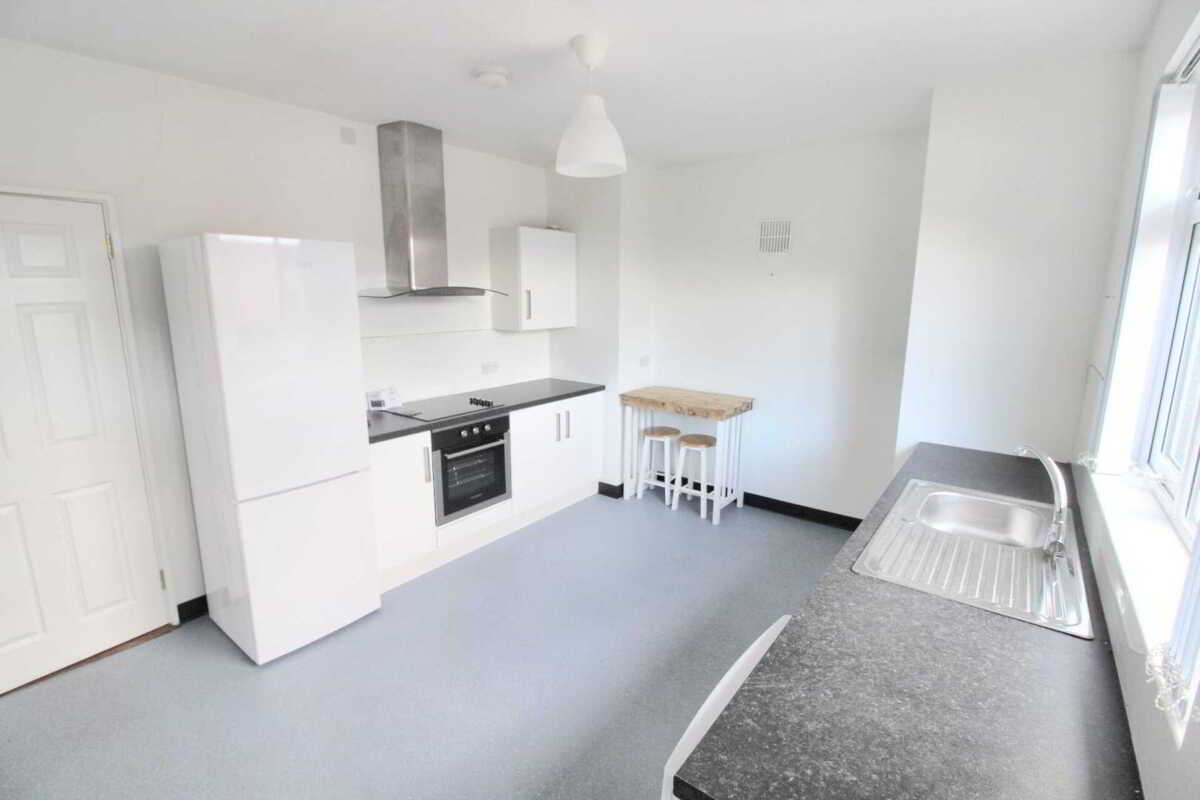- Fitted white high gloss kitchen