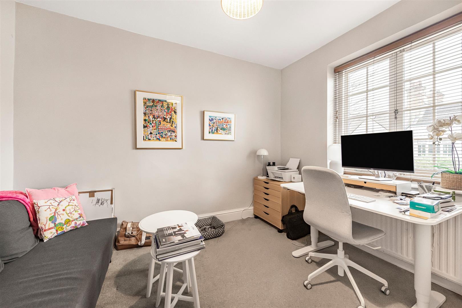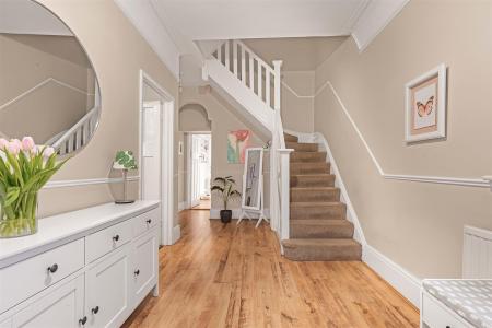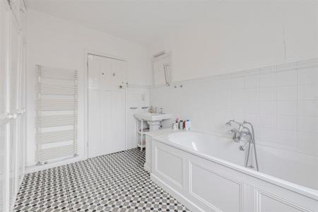 The first floor comprises three large double bedrooms and a stylish family bathroom, while the top floor provides a further double bedroom with built-in storage and an additional bathroom. Externally, the house benefits from a secluded, low-maintenance garden, ideal for both relaxing and entertaining.