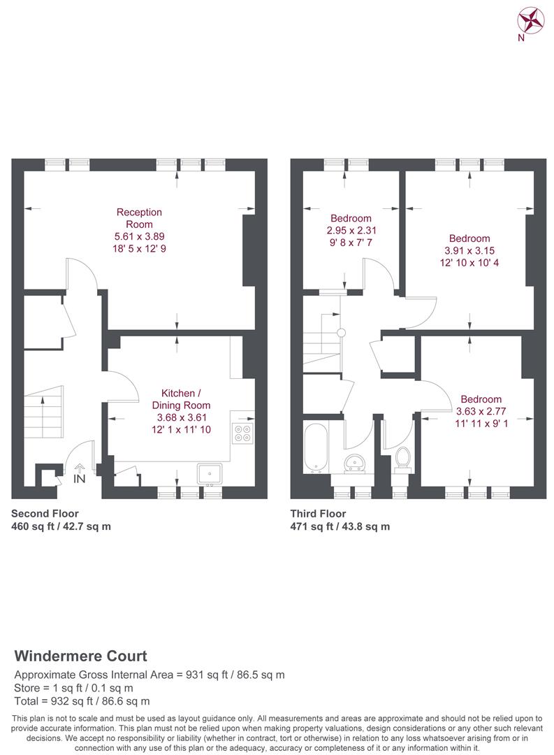 A wonderfully light and exceptionally spacious home. This split level maisonette is located in a popular development that benefits from well maintained communal gardens and residents parking. The accommodation is arranged over first and second floors to provide three bedrooms, a family bathroom with separate WC, an eat-in kitchen/breakfast room and a separate reception/dining room. The property benefits from ample storage throughout. Windermere Court is conveniently placed for local amenities and also Lowther Primary School.