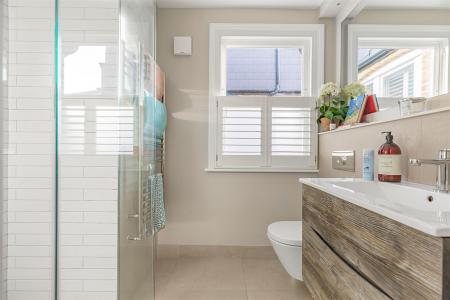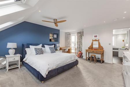 The accommodation includes two generous double bedrooms and a well-proportioned single bedroom. The principal bedroom boasts a luxurious en-suite bathroom and a walk-in wardrobe. A warm and inviting sitting room provides an ideal space to relax, while a second contemporary bathroom serves the remaining bedrooms.