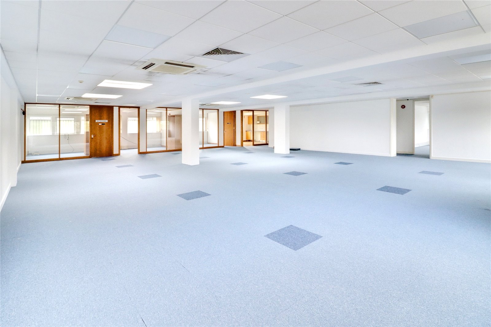 This self-contained office occupies the entire first floor. The space is primarily open-plan and includes a kitchenette, four private meeting rooms, and WC facilities.