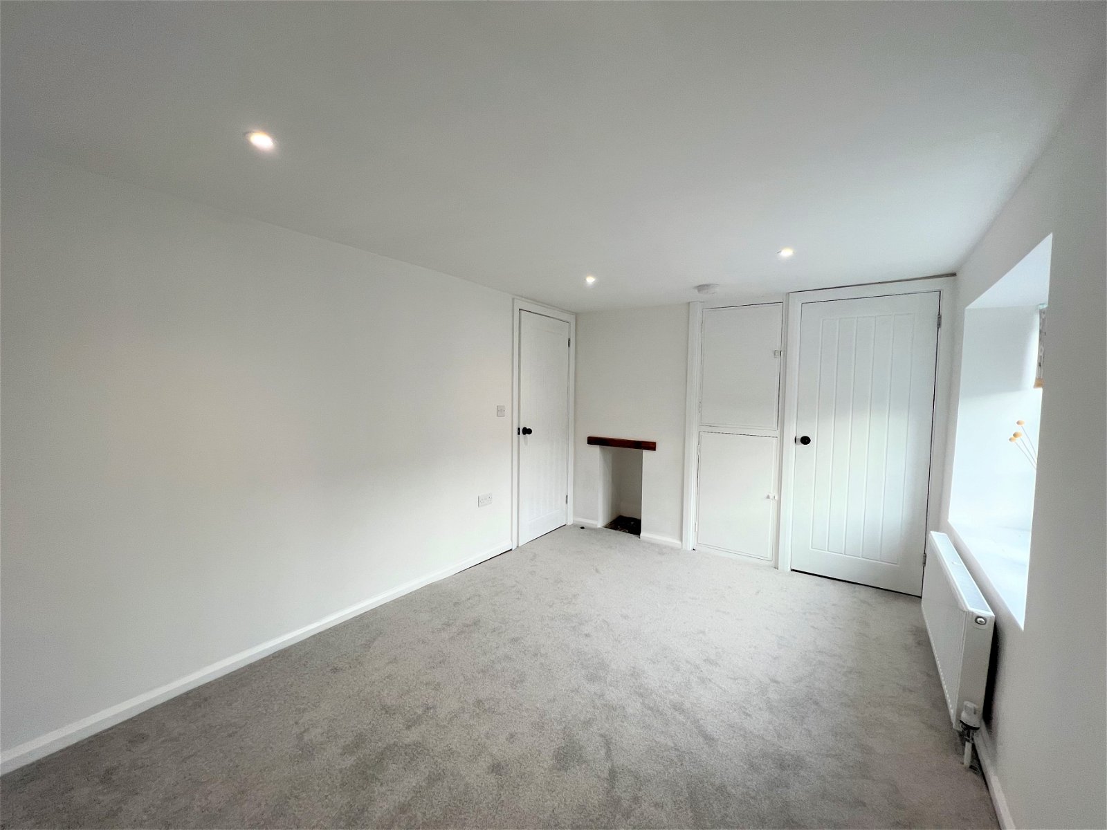 A generous double bedroom, presented to the front aspect of the property, having a double glazed window, a central heating radiator, spot lights to the ceiling. The room has a built-in storage cupboard and a further cupboard which houses the central heating boiler.