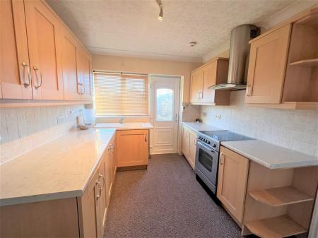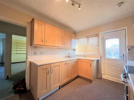Featuring a range of wall and base units with a complimentary roll edge work surface, which in turn incorporates a sink and drainer with a mixer tap over. Appliances include an integrated dishwasher, an integrated washing machine and a free standing cooker. There is space for a fridge freezer. The room has a front facing double glazed window, a Upvc entrance door, partial tiling to the walls and carpet to the floor. The kitchen gives access to the dining room.