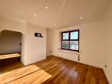 Upon entering through a solid wooden door, you’re welcomed into a spacious entrance lobby. This welcoming area leads to the utility room and features a central heating radiator, two side-facing double-glazed windows, and one rear-facing double-glazed window. Original tiled flooring has been beautifully restored, adding character to the space. A built-in coat rack and shoe storage complete the area.