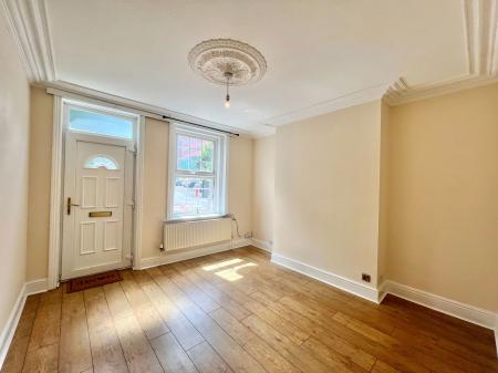 Entering through a modern UPVC front door, you're welcomed into a well-proportioned and inviting lounge featuring a front-facing double-glazed window and a central heating radiator.