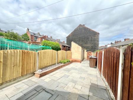 To the front of the property is a low-maintenance enclosed courtyard. At the rear, you'll find a fully enclosed, paved garden with fenced and walled boundaries—perfect for relaxing or entertaining. There's also a useful outbuilding providing extra storage.