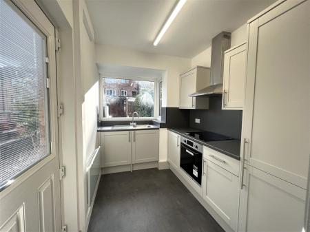 Set to the rear aspect of the home, having a double glazed window and a Composite door which opens directly onto the rear garden. Presented with a newly fitted modern kitchen, comprising a range of grey wall and base units, with a complimentary work surface which in turn incorporates a Stainless steel sink and drainer unit with a mixer tap over. Appliances include a four-ring electric hob with a fan assisted oven beneath and an extraction unit over and an integrated fridge freezer. The room has splash back tiling to the walls and an electric storage heater.