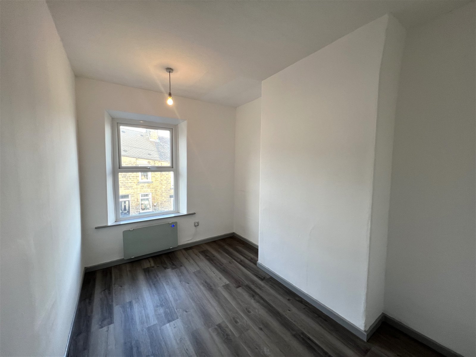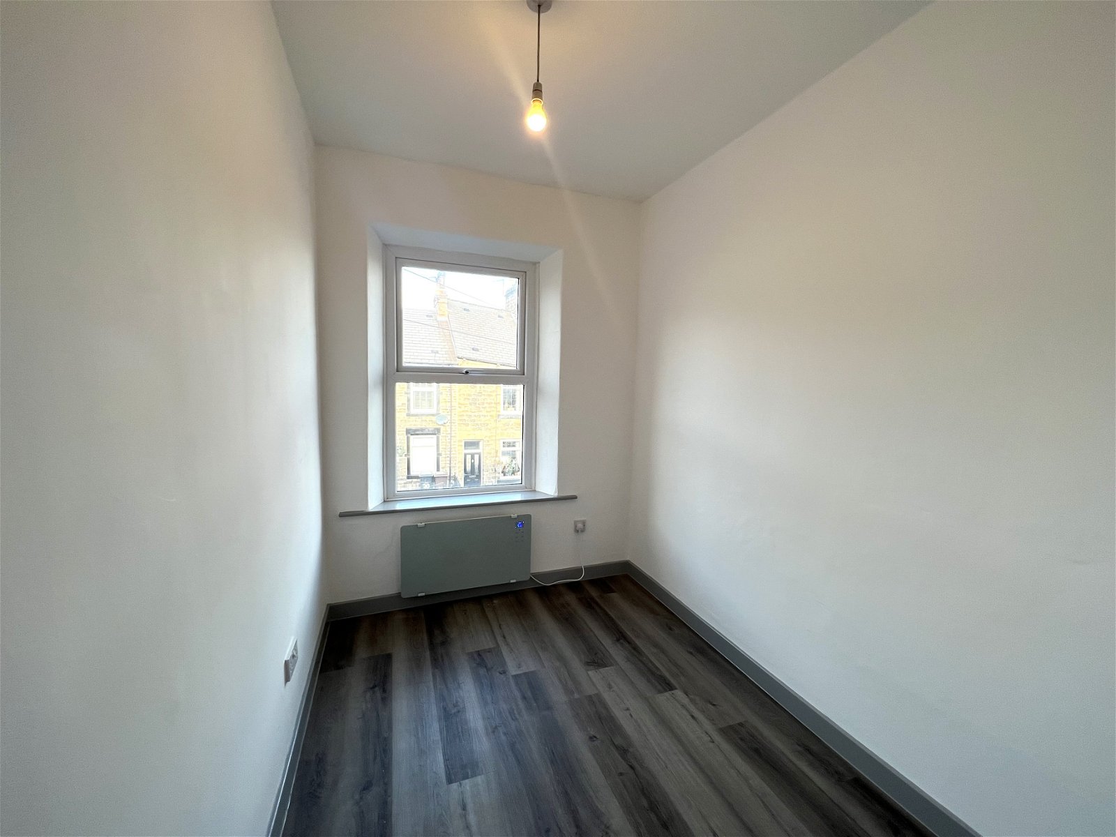 A single front facing bedroom with a double glazed window and an electric storage heater.