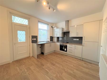 Presented with a newly fitted modern kitchen, having a range of wall and base units with a complimentary roll edge work surface, which incorporates a stainless-steel sink and drainer unit with a mixer tap over. Appliances include an integrated fridge freezer, an electric four ring hob with an extractor unit over, and an under counter fan assisted electric oven. There is plumbing for an automatic washing machine and the newly fitted boiler is housed in the kitchen. The kitchen has partial tiling to the walls, a central heating radiator, a double glazed window and a Upvc entrance door which opens into the rear porch, which in turn gives access to the rear garden. A further internal door gives access to the cellar