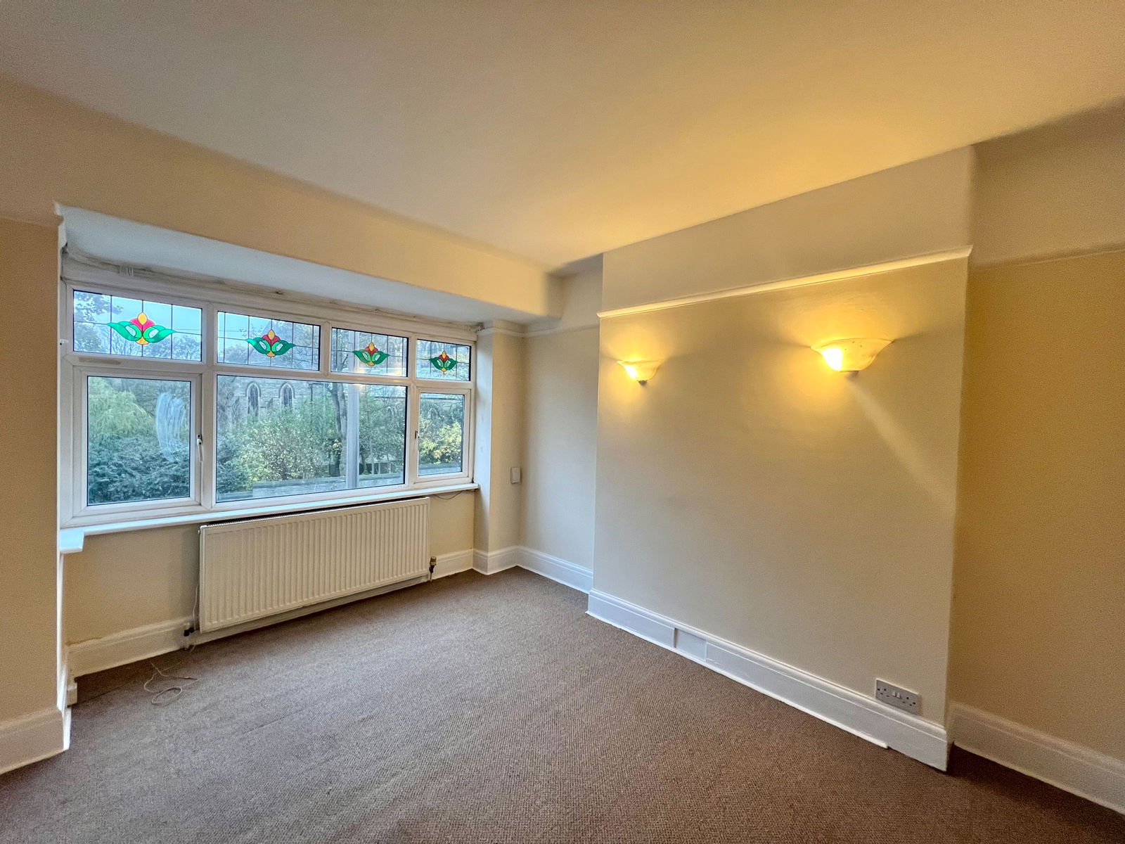 Overlooking house garden, having double glazed window and radiator.