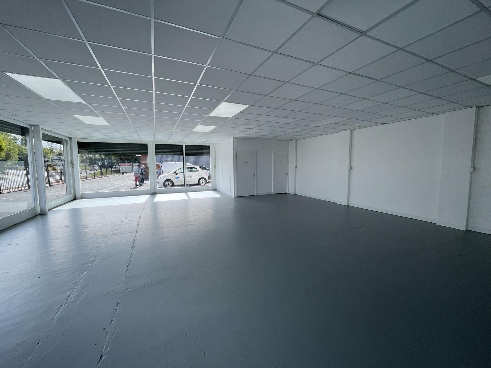 The former car sales showroom (Unit A) is a detached unit under a mono-pitched roof and provides a showroom area, plus office and storage.