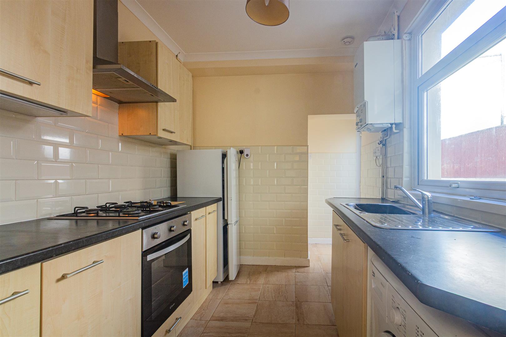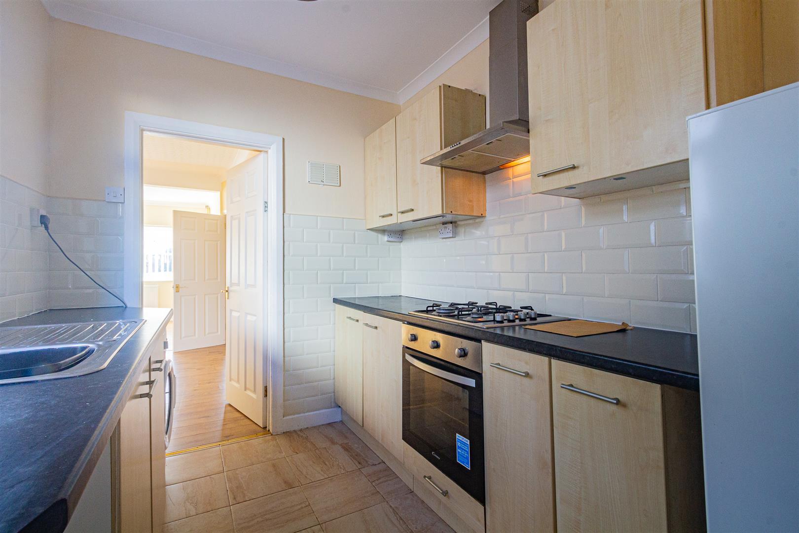 Kitchen - 2.92m x 2.29m - UPVC double glazed window to side elevation. Coving to ceiling. Modern range of wall and base units with granite effect work surfaces over. Tiling to splash back areas with border. Stainless steel sink and drainer with mixer tap over. Built in electric oven/grill and inset four ring gas hob with stainless steel extractor fan above. Space for upright fridge/freezer. Plumbing for washing machine. Wall mounted 'Worcester' combination boiler operating hot water and central heating. Power points. Ceramic tiling to floor.