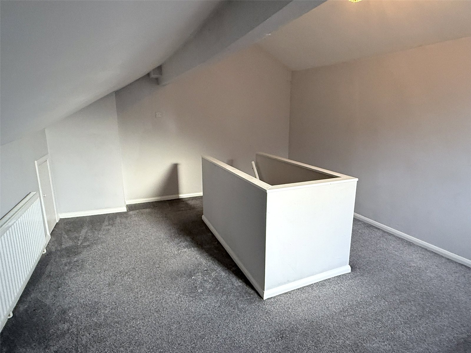 Attic Bedroom 12'10" x 16'11" (3.9m x 5.16m). Radiator, Upvc window and under eaves storage.