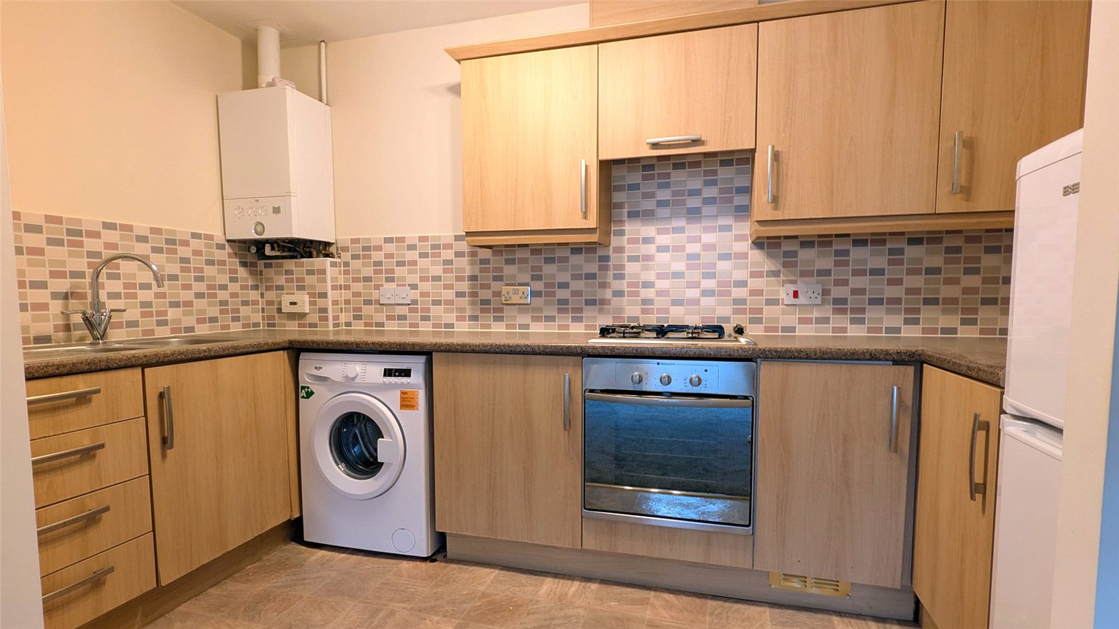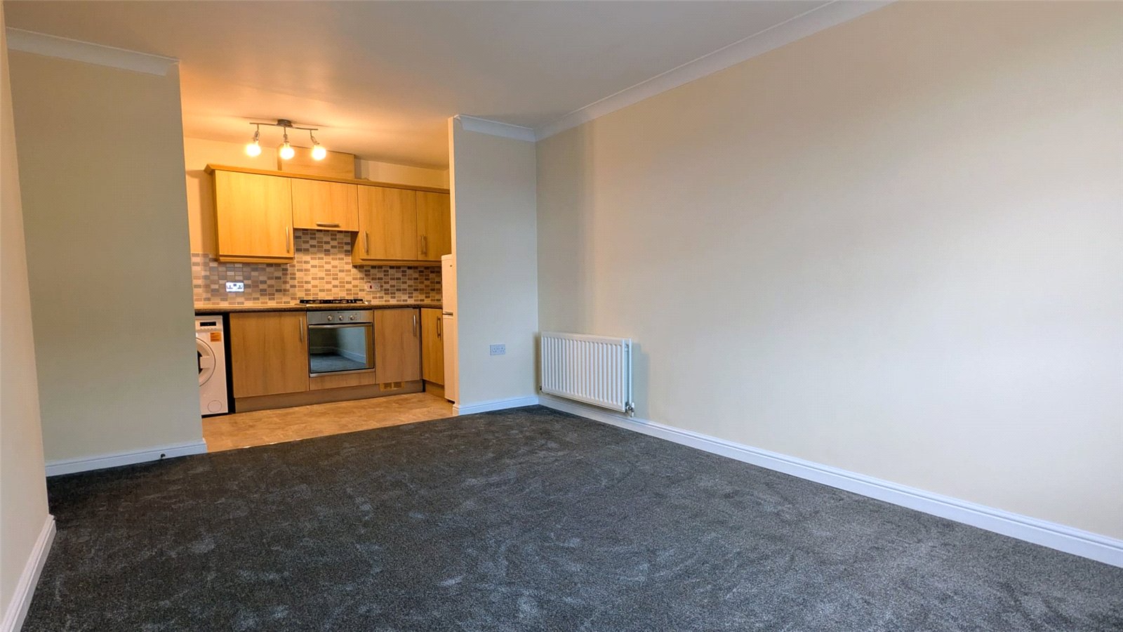 At the end of the hallway is where you find the open living space. The lounge/diner flows nicely into the kitchen, with three windows bringing in plenty of natural light.