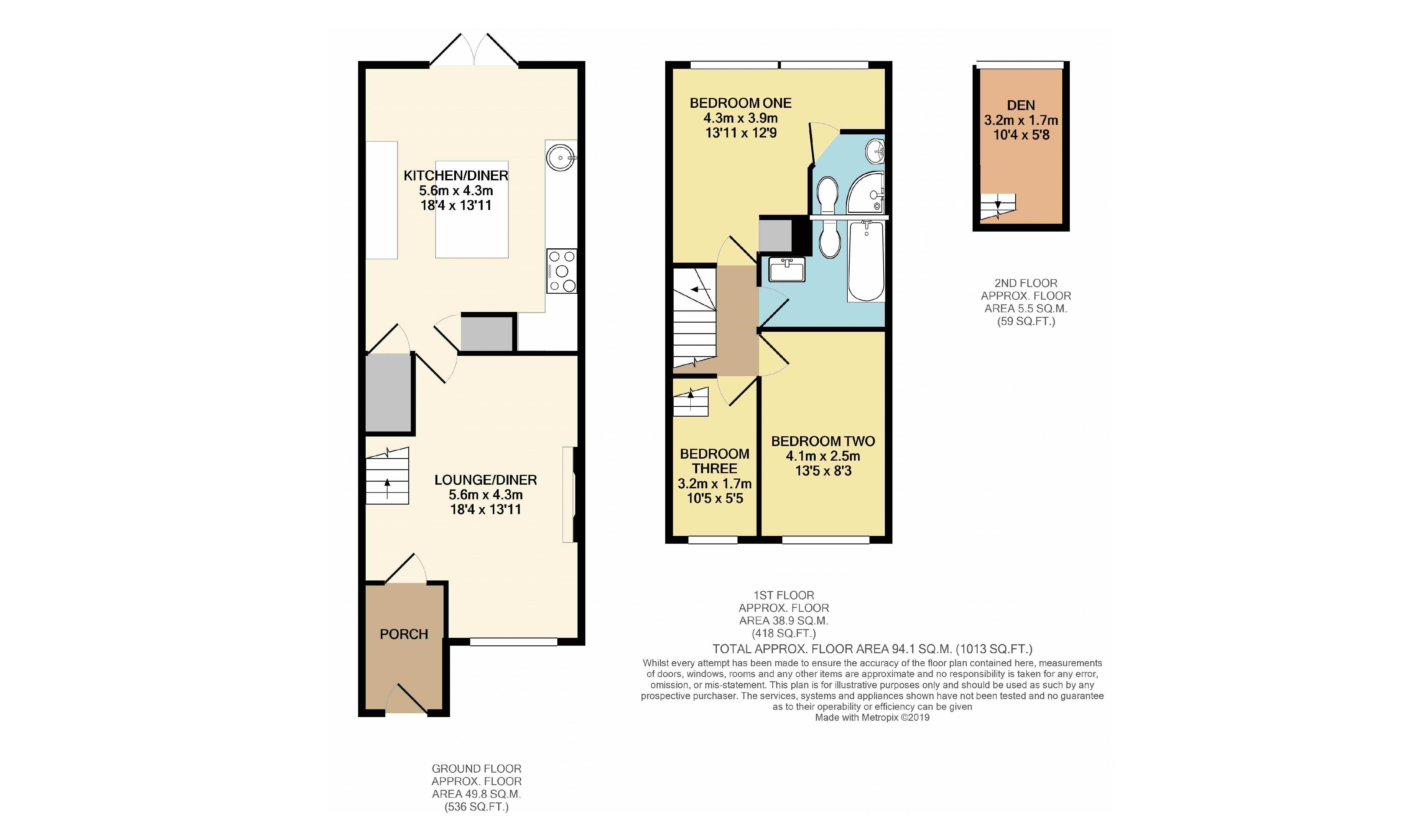The current accommodation consists of an entrance porch before you step into the bright and airy lounge area. This then leads into the ultra modern and impeccable refitted kitchen/diner to the rear which houses built in appliances and over looks the garden. The first floor benefits from three well proportioned bedrooms with the master being accompanied by a refitted en suite shower room which is in addition to the refitted family bathroom. There is also a den in the loft space accessed from bedroom three to allow for more room!