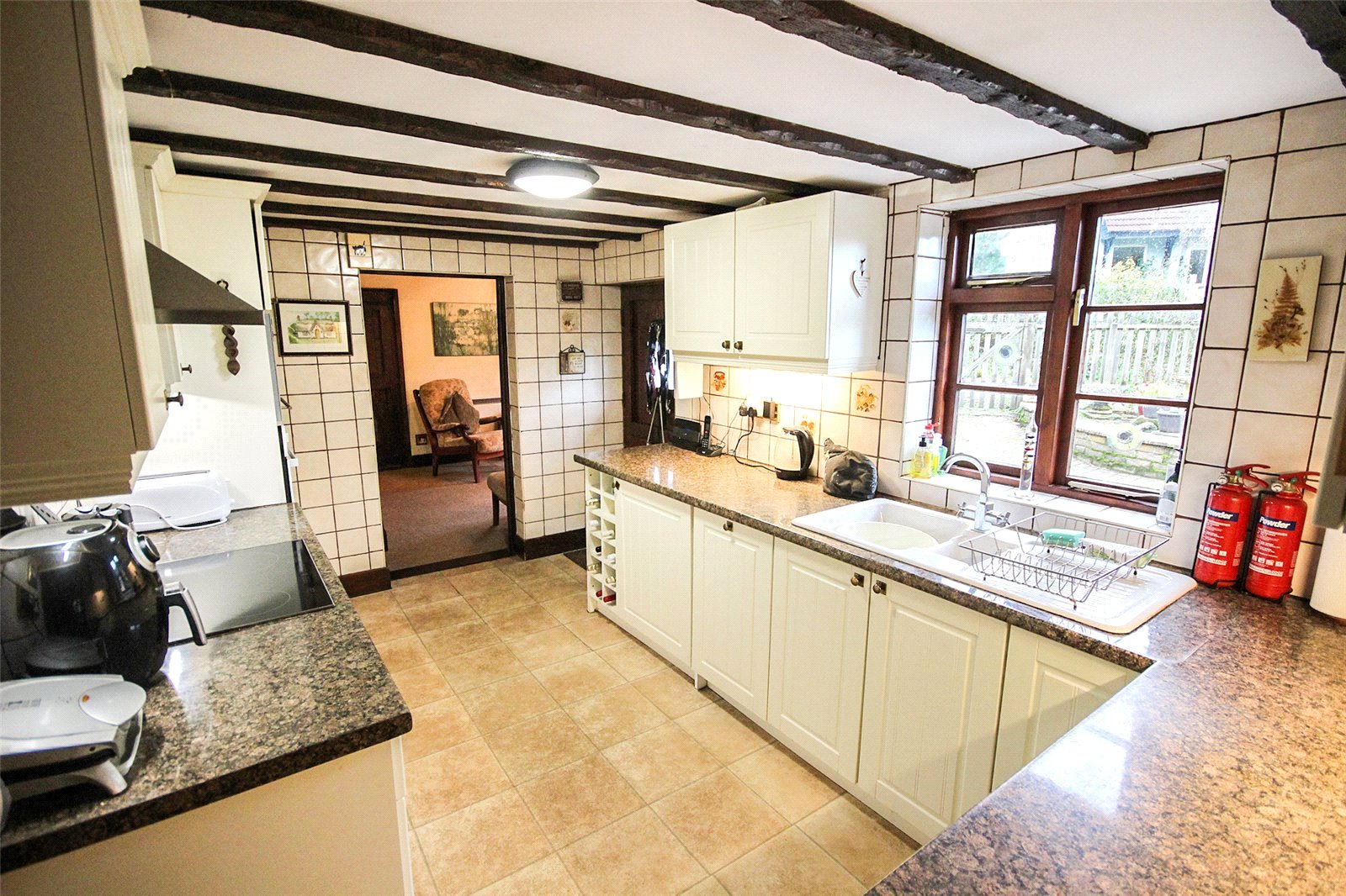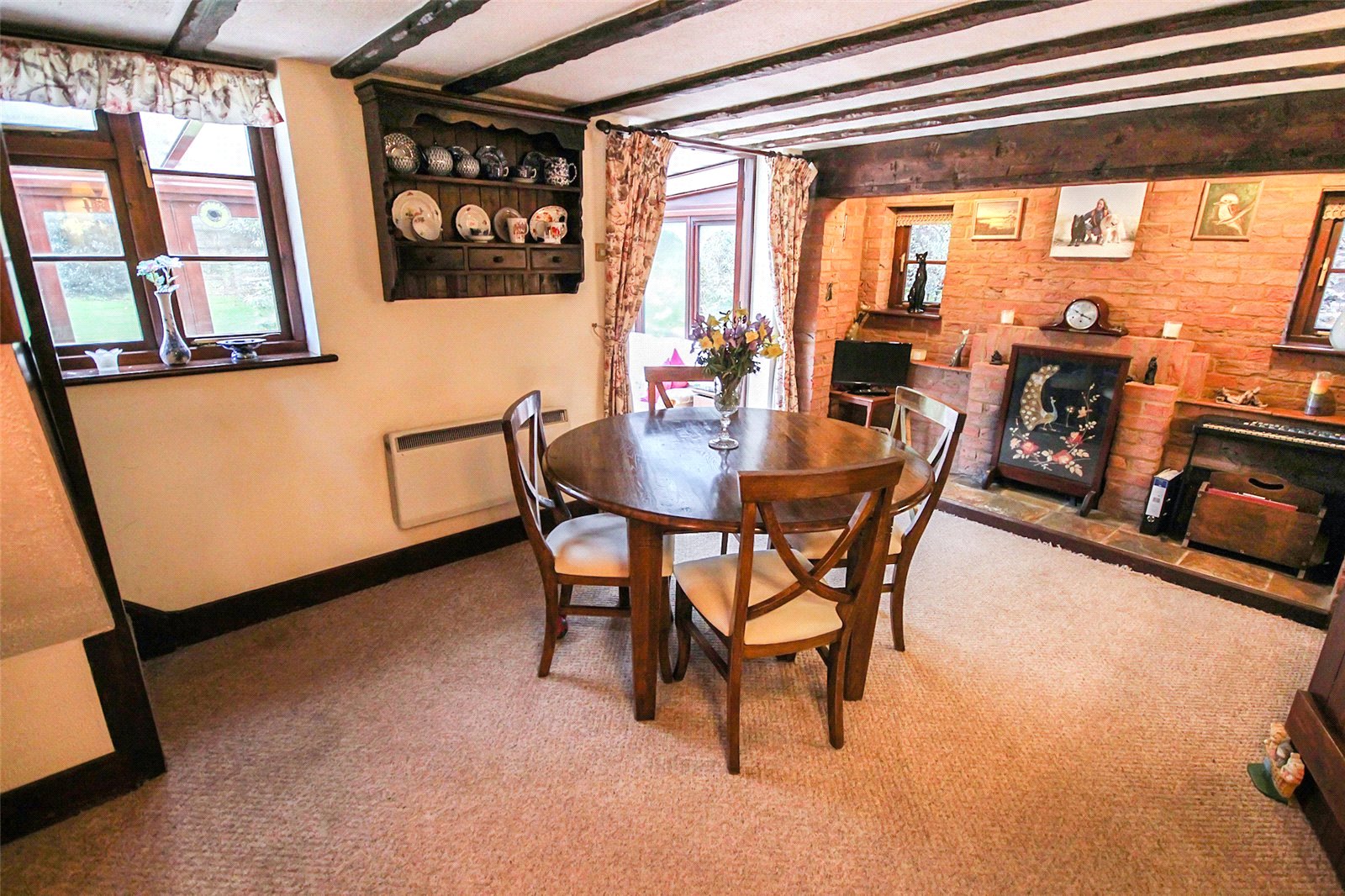 Approach to the home is via an attractive gate, beyond which a lawned frontage leads to the front door. This is a chunky wooden door which opens into a small porch, this in turn provides access directly into the living room. This is a wonderful space that has light flooding through from two separate aspects and benefits from a real focal point to the room by way of a feature fireplace sitting diagonally to one end. Running parallel to here is the master bedroom which has been fitted with a comprehensive range of built in shelved and railed wardrobes and has an attractive beamed ceiling. The kitchen is particularly generous, measuring almost 14ft in length and having been fitted with numerous floor and wall mounted units with contrasting work surfaces over. Several appliances have been cleverly woven into the design including an electric hob, double oven, and extractor hood. The floor and splashbacks have been thoughtfully tiled whilst a window and external door overlook the side elevation. To the opposite side of the kitchen is a small lobby area which, currently, houses a useful shower enclosure, whilst beyond that is the principle bathroom. This comprises of a panelled bath, low level wc and wash hand basin. Towards the rear of the property is a large dining room, this has an imposing inglenook fireplace which creates real drama to the space. A door cleverly conceals the staircase leading to the first floor accommodation, whilst a set of French doors provides entry to the completion of the ground floor accommodation. This is a deceptively generous sun room, the dimensions of which exceed 17ft in width and allow time to take in the breathtaking gardens. Once upstairs you are greeted by the second bedroom which has a beautifully shaped ceiling giving real character to the space. Another set of built in wardrobes make additional furniture placement straightforward.