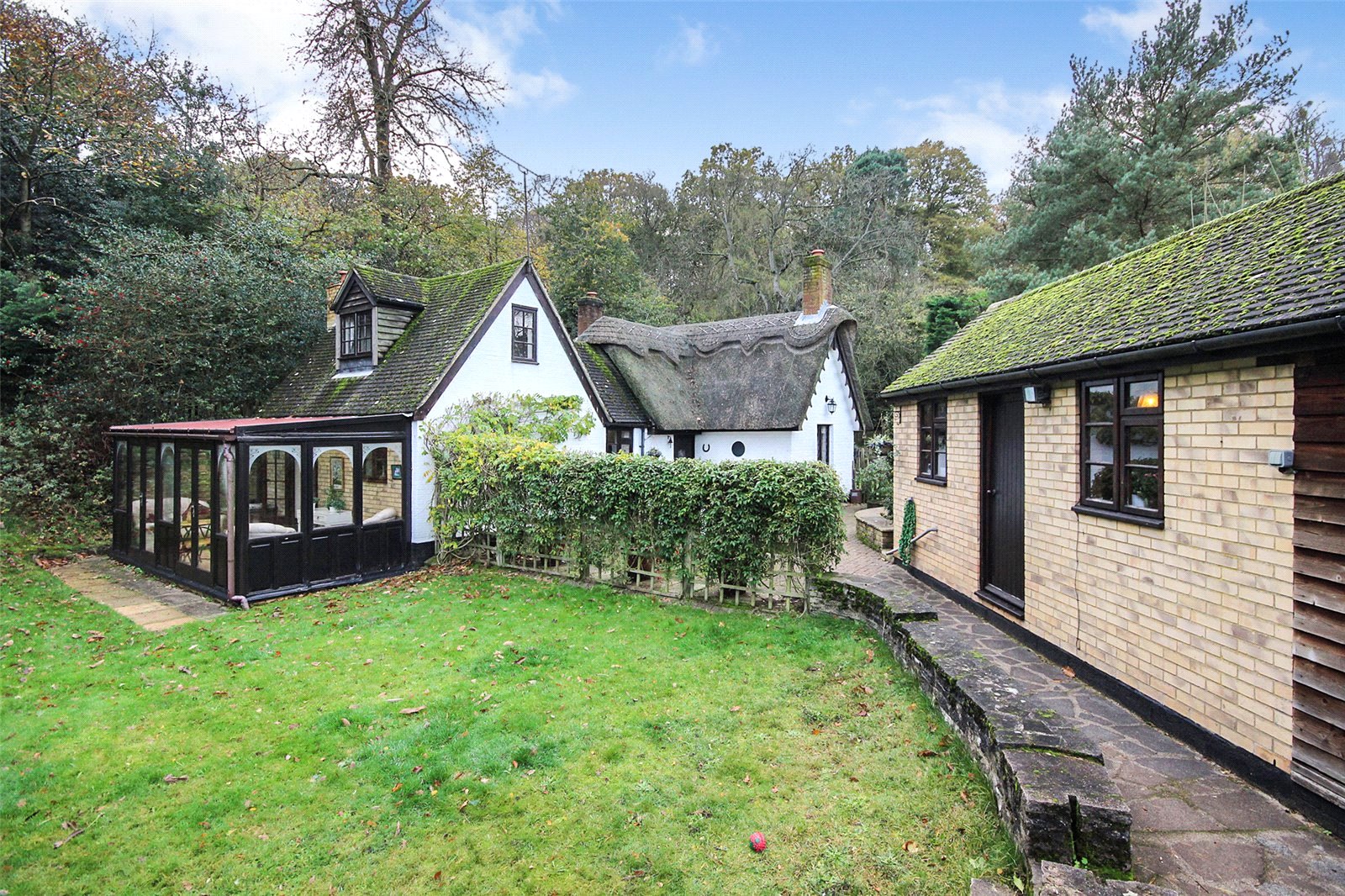 An absolutely iconic two bedroom Grade II listed cottage set on the fringe of the picturesque market town of Ampthill. Benefiting from beautiful, versatile internal accommodation, in addition to ample parking, oversized garage and generous gardens overlooking open woodland beyond.