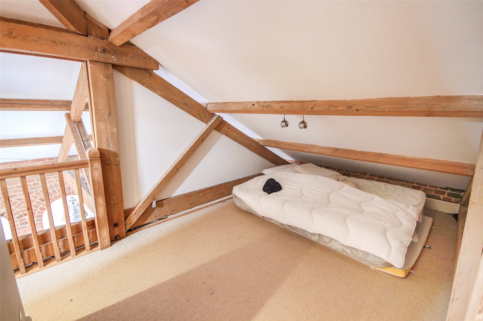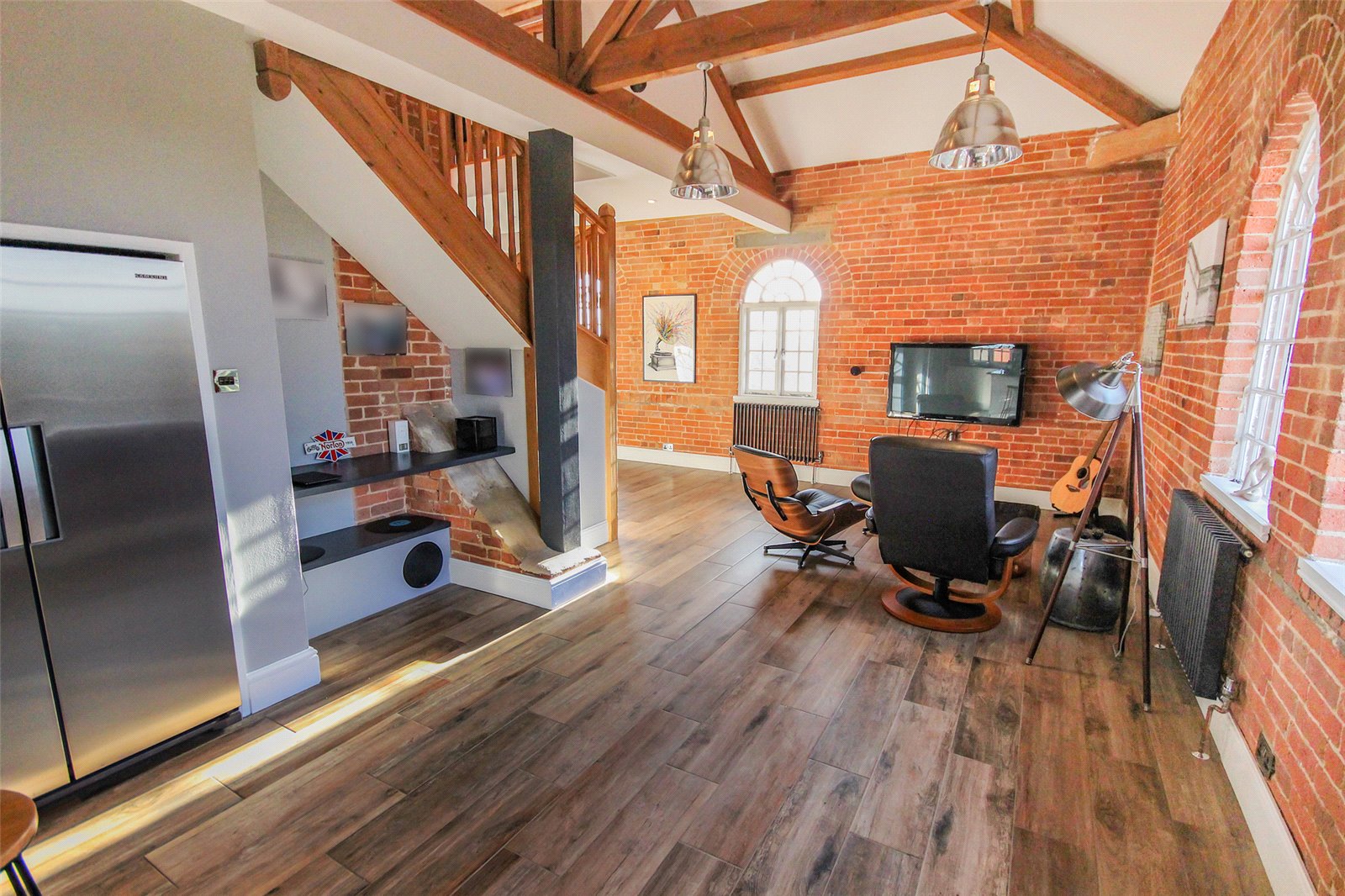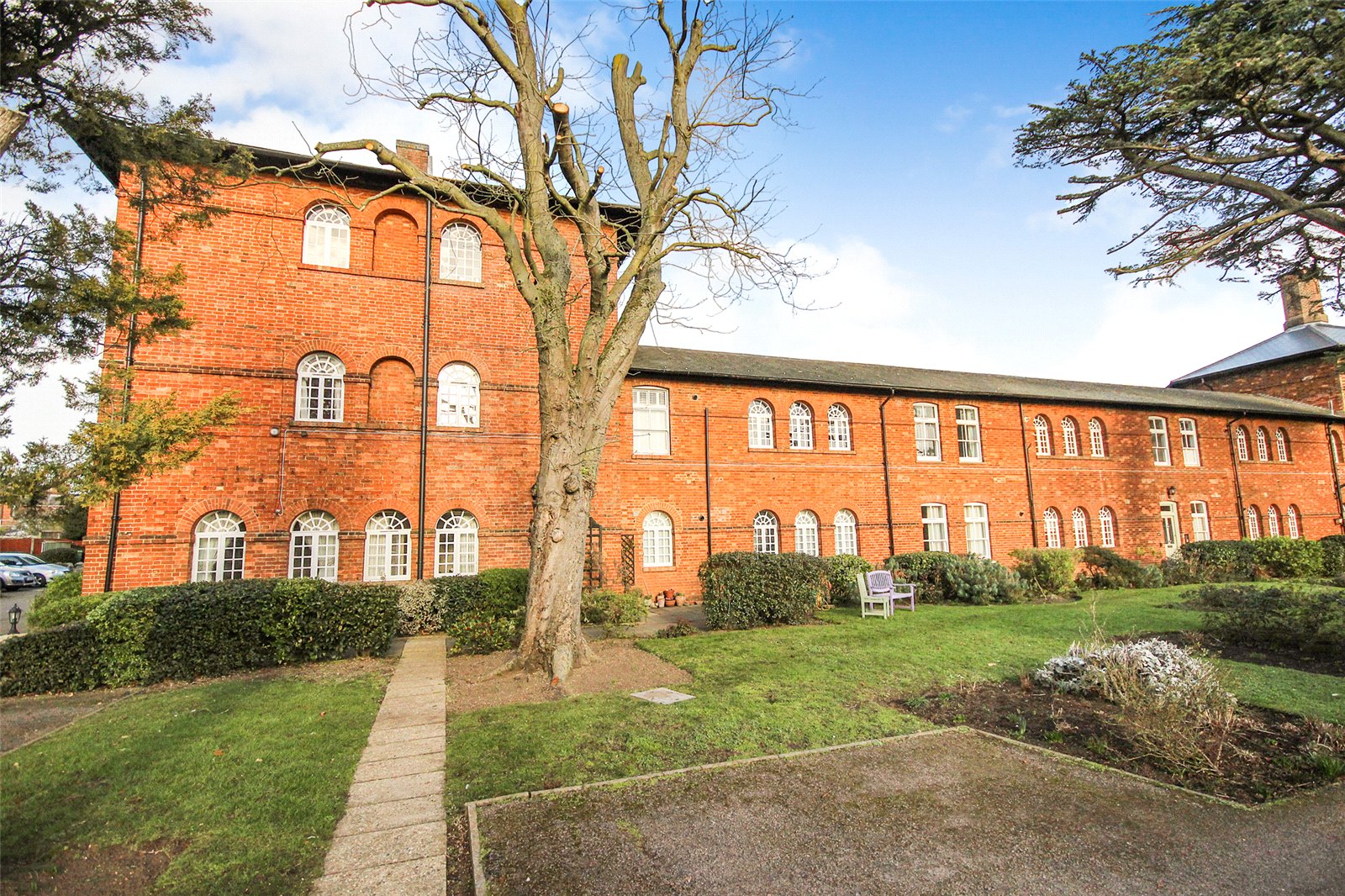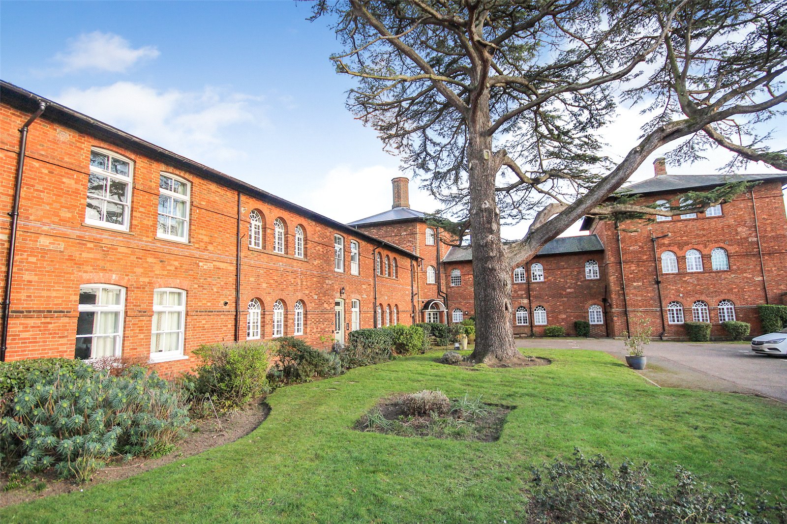 Set within the historic Cedars development in Ampthill this quite superb one/two bedroom penthouse apartment benefits from a wealth of beautiful character accommodation in addition to parking and immaculate communal gardens.This former workhouse building, which dates back to circa 1837, is partially hidden behind a tree lined street and approach is via double electric gates directly into the grounds where you're greeted with ever green gardens surrounding the entirety of the conversion. Initially an ample run of parking bays sit under a beautiful Cedar tree which not only screens the gardens but also acts as useful shade from the beating sun. A door leads into the communal entrance hall which is immaculately decorated and cared for with a natural wood topped staircase graced by stylish tiger print carpet running to the top floor. Once inside the apartment itself the quality and grandeur is instantly recognisable with the hallway having been laid with a dark wood effect porcelain floor tile and having been fitted with a comprehensive range of mirror fronted sliding storage cupboards while exposed, original brickwork occupies one wall. To the left hand side entry is provided into the open plan kitchen/dining/living room, this is a truly spectacular space with a full height beamed and vaulted ceiling with a dog leg staircase snaking to the first floor accommodation. Further exposed brickwork and a continuation of the same flooring ties the two areas together seamlessly. Space to one end allows convenient furniture placement whilst to the far side the kitchen area has been meticulously planned with a range of high end floor and wall mounted units with contrasting darker Granite work surfaces over. Several integrated appliances have been cleverly woven into the design including a four ring induction hob, recessed extractor unit built into the counter space, combination fan oven/microwave, dishwasher, washer/dryer as well as a Samsung American style fridge/freezer with instant chilled and filtered water. An island also provides a useful breakfast bar. Multiple windows run across the two elevations flooding the area with ample natural daylight. This space also has the benefit of zoned underfloor heating throughout and surround sound speakers recessed into the ceiling. Back into the hallway the far end leads into the main bedroom, again, this has been immaculately decorated in neutral tones and hues and fitted with a range of wardrobes. Matching bedside tables have been topped with black granite adding a splash of opulence. Servicing the apartment is a high end specification bathroom refitted with a four piece suite comprising of a large walk in double shower enclosure with rain head over as well as a separate body attachment. A panelled bath with coloured lighting dots underneath, cistern concealed wc and his and hers basins mounted into a contemporary vanity unit completes the look. The walls have been finished in a high gloss modern tile with contrasting more rustic tiling in the shower enclosure while anti mist mirrored cabinets include LED lighting and internal shaver/toothbrush charging points. Moving upstairs the mezzanine offers a delightful elevation over the living room area and provides enough space, in our opinion, to be used as a second bedroom or study area. Eaves storage could, conceivably, be utilised as extra wardrobe space if required and an opening roof window brings in further daylight. Externally the communal gardens are well tended and offer real interest with a combination of lawned area, shaped borders which are heavily stocked with various plants, shrubs and bushes as well as numerous seating areas creating relaxing spaces to sit and read a book, chat with friends or simply enjoying the world going by. Within walking distance is access to Ampthill town centre and its extensive amenities, parks, local schools and Waitrose store. Links into London are from the Flitwick platform with a frequent service to St Pancras which takes as little as 40 minutes. The area is renowned for its autonomous schooling at all levels including Redborne Academy, other schools include both Russell Lower and Alameda, all of which are within a short distance from the property.