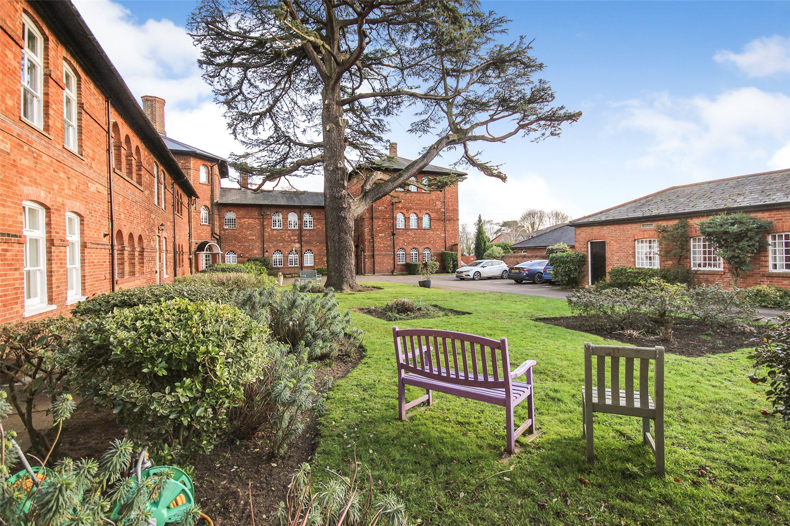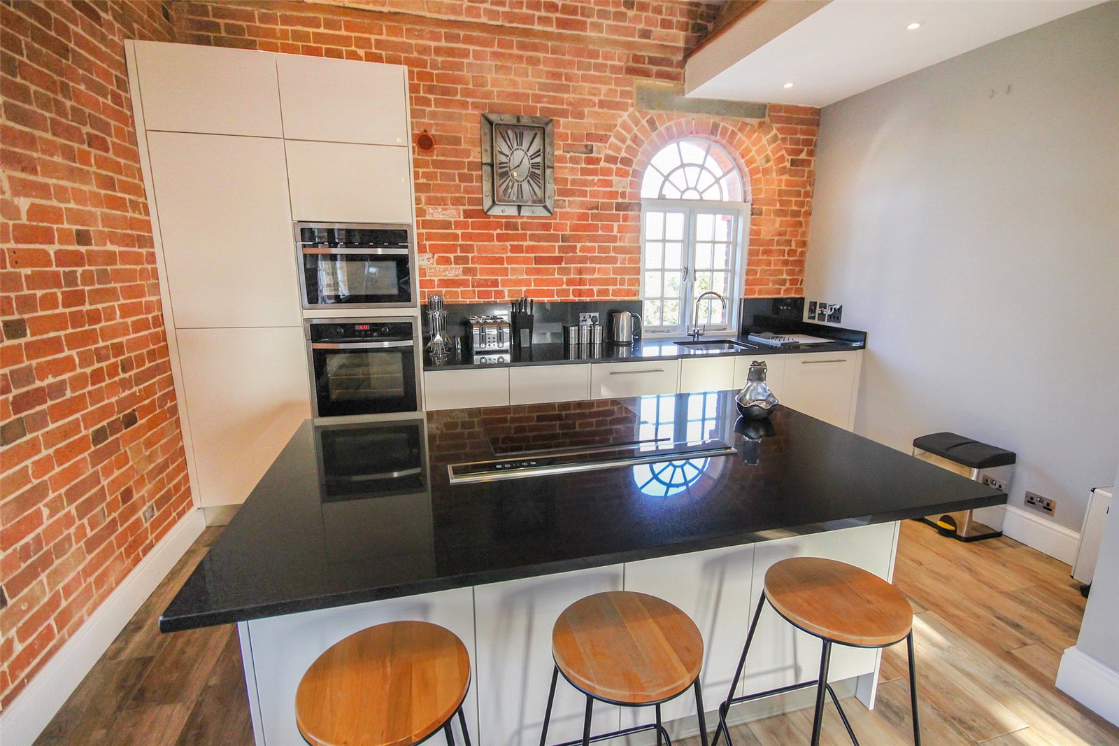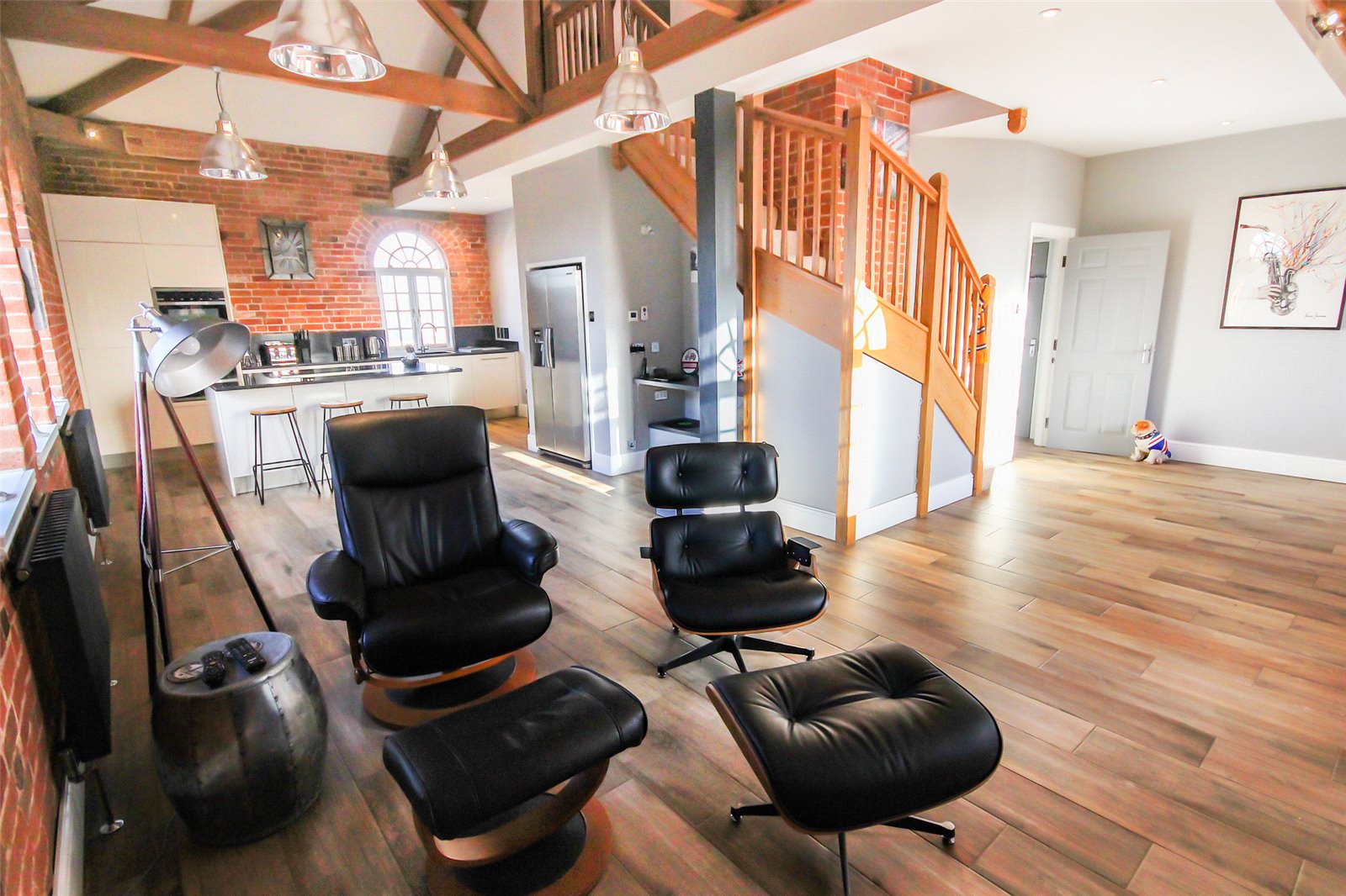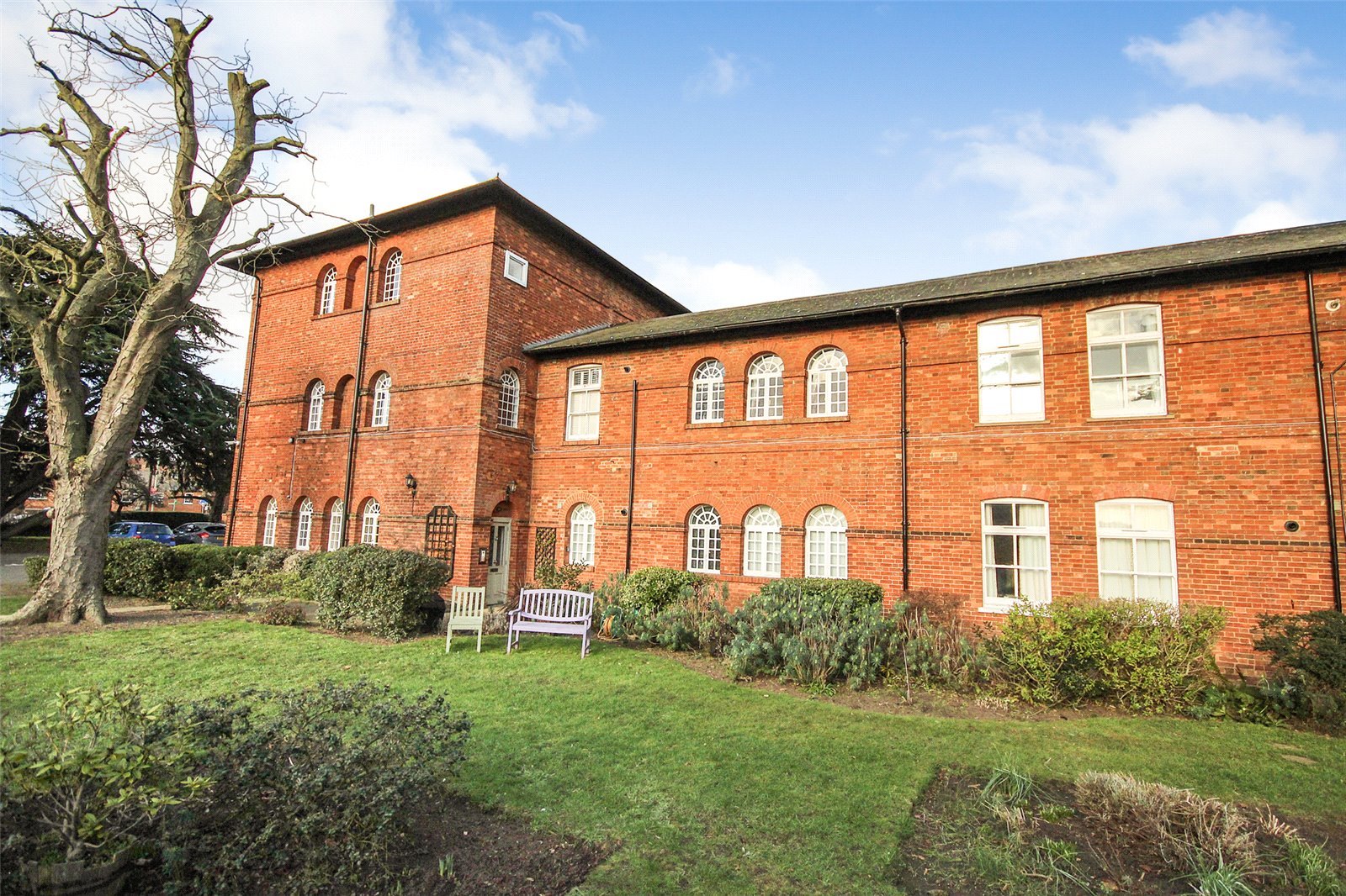 Set within the historic Cedars development in Ampthill this quite superb one/two bedroom penthouse apartment benefits from a wealth of beautiful character accommodation in addition to parking and immaculate communal gardens.This former workhouse building, which dates back to circa 1837, is partially hidden behind a tree lined street and approach is via double electric gates directly into the grounds where you're greeted with ever green gardens surrounding the entirety of the conversion. Initially an ample run of parking bays sit under a beautiful Cedar tree which not only screens the gardens but also acts as useful shade from the beating sun. A door leads into the communal entrance hall which is immaculately decorated and cared for with a natural wood topped staircase graced by stylish tiger print carpet running to the top floor. Once inside the apartment itself the quality and grandeur is instantly recognisable with the hallway having been laid with a dark wood effect porcelain floor tile and having been fitted with a comprehensive range of mirror fronted sliding storage cupboards while exposed, original brickwork occupies one wall. To the left hand side entry is provided into the open plan kitchen/dining/living room, this is a truly spectacular space with a full height beamed and vaulted ceiling with a dog leg staircase snaking to the first floor accommodation. Further exposed brickwork and a continuation of the same flooring ties the two areas together seamlessly. Space to one end allows convenient furniture placement whilst to the far side the kitchen area has been meticulously planned with a range of high end floor and wall mounted units with contrasting darker Granite work surfaces over. Several integrated appliances have been cleverly woven into the design including a four ring induction hob, recessed extractor unit built into the counter space, combination fan oven/microwave, dishwasher, washer/dryer as well as a Samsung American style fridge/freezer with instant chilled and filtered water. An island also provides a useful breakfast bar. Multiple windows run across the two elevations flooding the area with ample natural daylight. This space also has the benefit of zoned underfloor heating throughout and surround sound speakers recessed into the ceiling. Back into the hallway the far end leads into the main bedroom, again, this has been immaculately decorated in neutral tones and hues and fitted with a range of wardrobes. Matching bedside tables have been topped with black granite adding a splash of opulence. Servicing the apartment is a high end specification bathroom refitted with a four piece suite comprising of a large walk in double shower enclosure with rain head over as well as a separate body attachment. A panelled bath with coloured lighting dots underneath, cistern concealed wc and his and hers basins mounted into a contemporary vanity unit completes the look. The walls have been finished in a high gloss modern tile with contrasting more rustic tiling in the shower enclosure while anti mist mirrored cabinets include LED lighting and internal shaver/toothbrush charging points. Moving upstairs the mezzanine offers a delightful elevation over the living room area and provides enough space, in our opinion, to be used as a second bedroom or study area. Eaves storage could, conceivably, be utilised as extra wardrobe space if required and an opening roof window brings in further daylight. Externally the communal gardens are well tended and offer real interest with a combination of lawned area, shaped borders which are heavily stocked with various plants, shrubs and bushes as well as numerous seating areas creating relaxing spaces to sit and read a book, chat with friends or simply enjoying the world going by. Within walking distance is access to Ampthill town centre and its extensive amenities, parks, local schools and Waitrose store. Links into London are from the Flitwick platform with a frequent service to St Pancras which takes as little as 40 minutes. The area is renowned for its autonomous schooling at all levels including Redborne Academy, other schools include both Russell Lower and Alameda, all of which are within a short distance from the property.