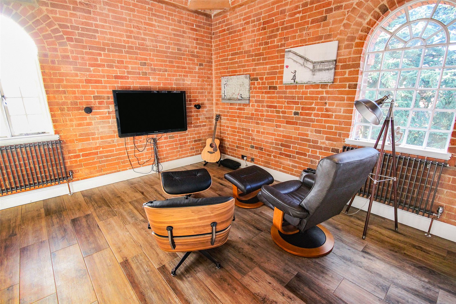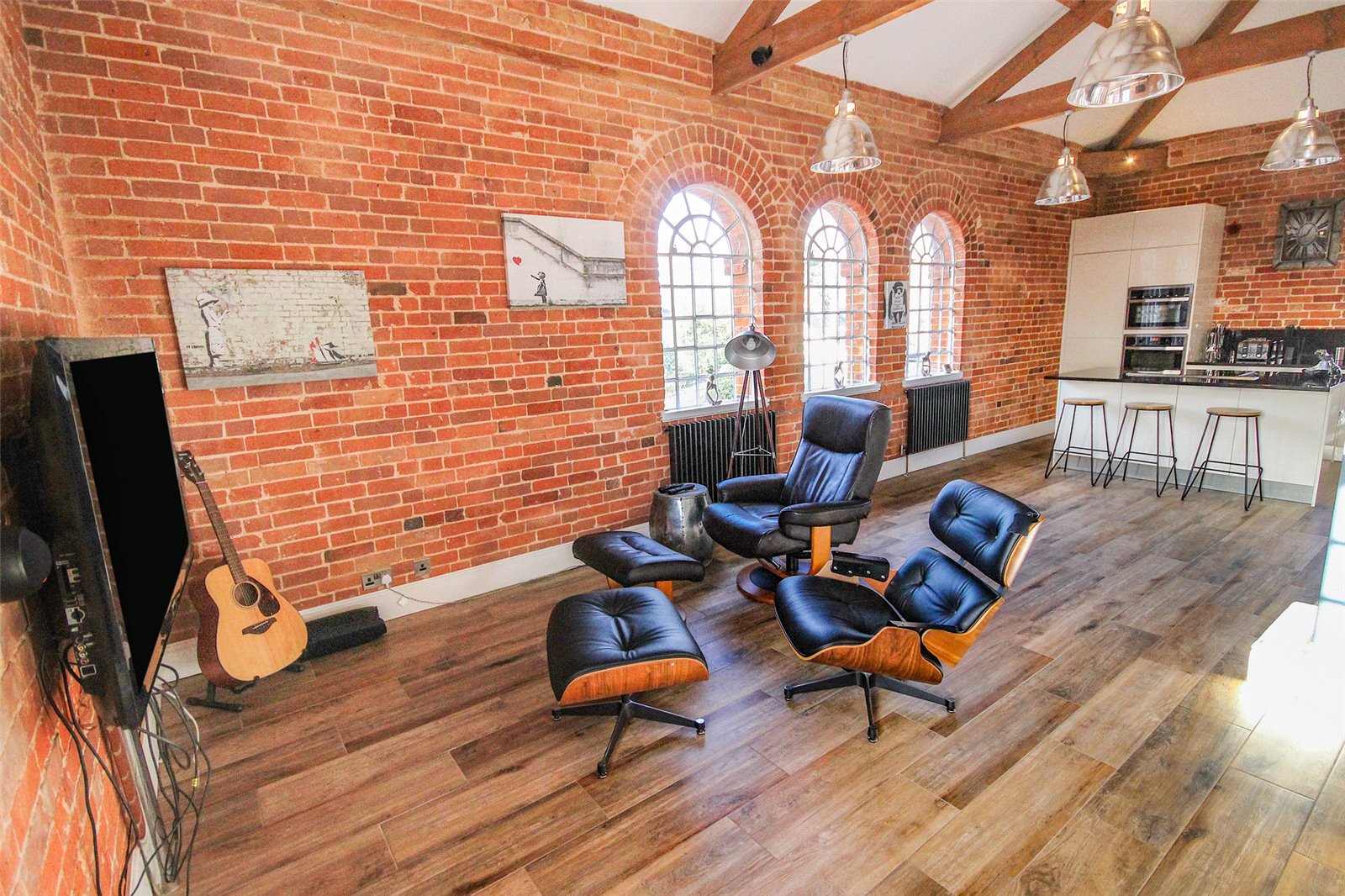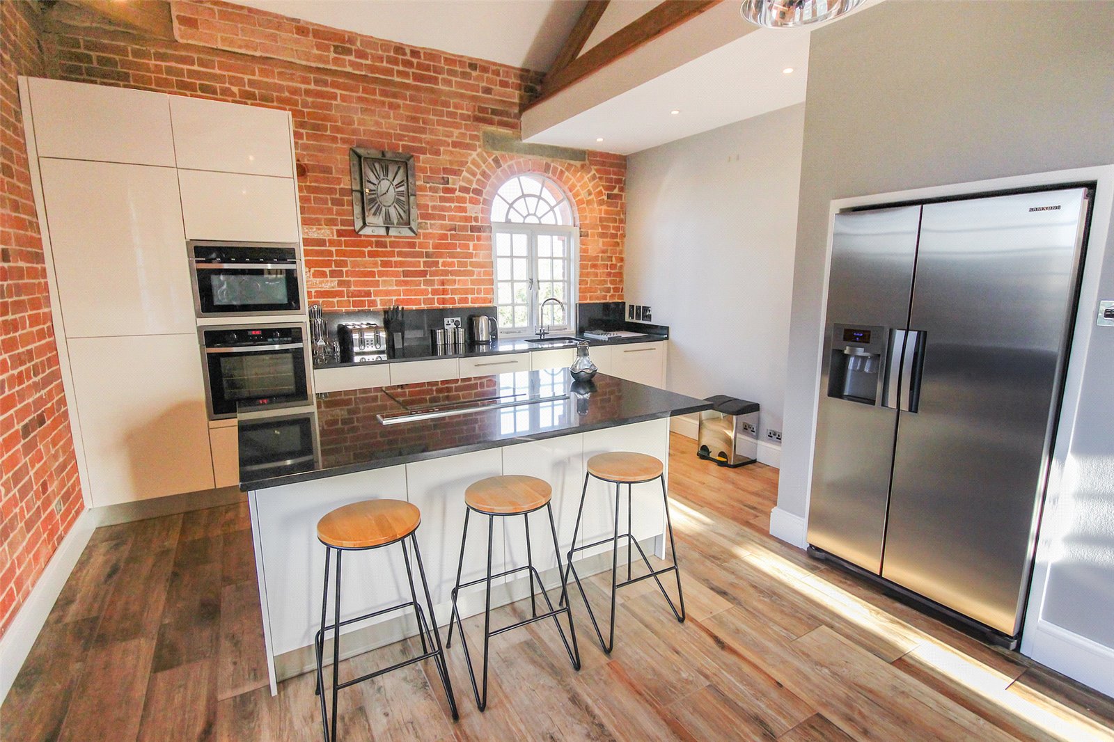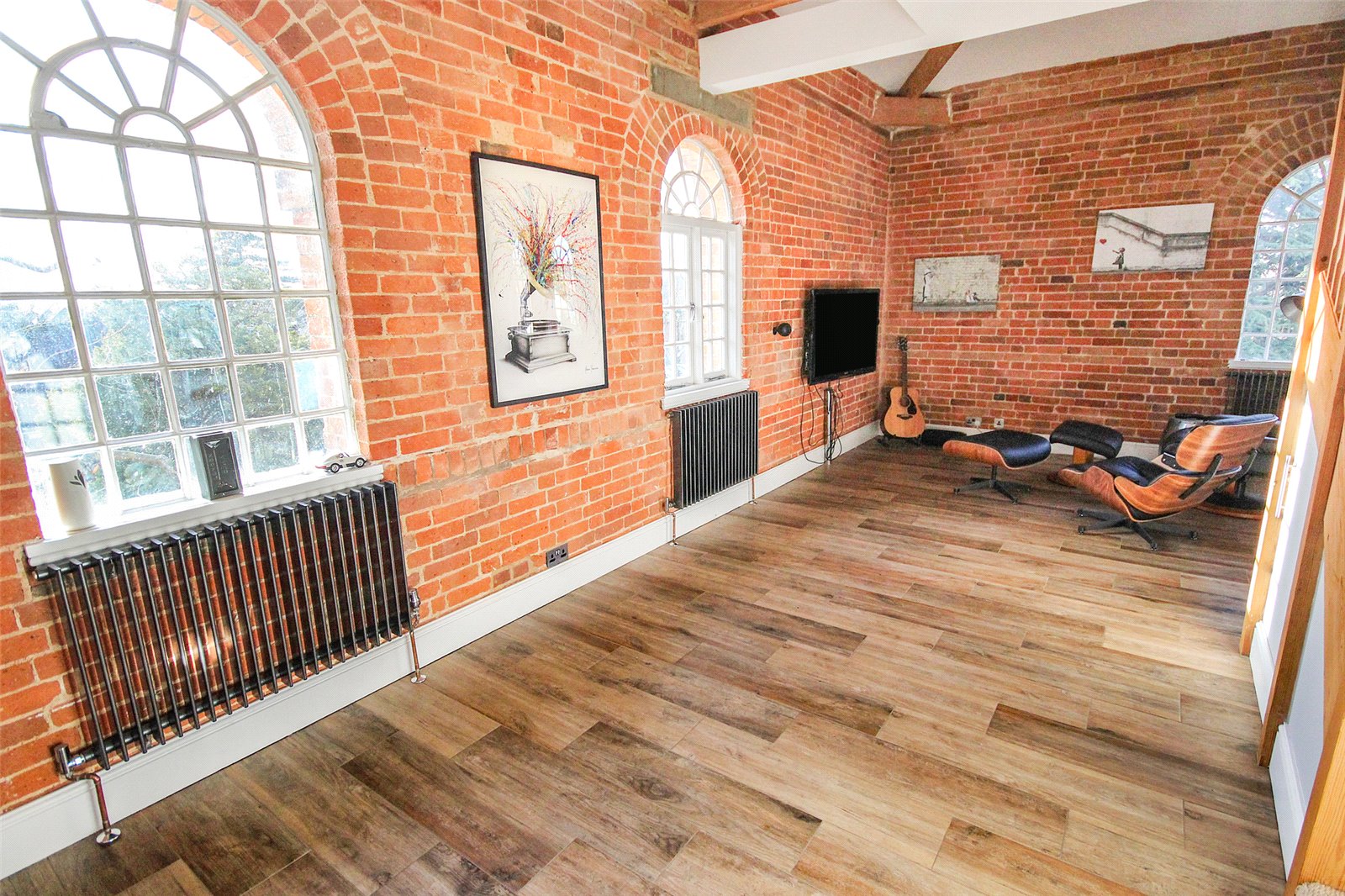 Set within the historic Cedars development in Ampthill this quite superb one/two bedroom penthouse apartment benefits from a wealth of beautiful character accommodation in addition to parking and immaculate communal gardens.This former workhouse building, which dates back to circa 1837, is partially hidden behind a tree lined street and approach is via double electric gates directly into the grounds where you're greeted with ever green gardens surrounding the entirety of the conversion. Initially an ample run of parking bays sit under a beautiful Cedar tree which not only screens the gardens but also acts as useful shade from the beating sun. A door leads into the communal entrance hall which is immaculately decorated and cared for with a natural wood topped staircase graced by stylish tiger print carpet running to the top floor. Once inside the apartment itself the quality and grandeur is instantly recognisable with the hallway having been laid with a dark wood effect porcelain floor tile and having been fitted with a comprehensive range of mirror fronted sliding storage cupboards while exposed, original brickwork occupies one wall. To the left hand side entry is provided into the open plan kitchen/dining/living room, this is a truly spectacular space with a full height beamed and vaulted ceiling with a dog leg staircase snaking to the first floor accommodation. Further exposed brickwork and a continuation of the same flooring ties the two areas together seamlessly. Space to one end allows convenient furniture placement whilst to the far side the kitchen area has been meticulously planned with a range of high end floor and wall mounted units with contrasting darker Granite work surfaces over. Several integrated appliances have been cleverly woven into the design including a four ring induction hob, recessed extractor unit built into the counter space, combination fan oven/microwave, dishwasher, washer/dryer as well as a Samsung American style fridge/freezer with instant chilled and filtered water. An island also provides a useful breakfast bar. Multiple windows run across the two elevations flooding the area with ample natural daylight. This space also has the benefit of zoned underfloor heating throughout and surround sound speakers recessed into the ceiling. Back into the hallway the far end leads into the main bedroom, again, this has been immaculately decorated in neutral tones and hues and fitted with a range of wardrobes. Matching bedside tables have been topped with black granite adding a splash of opulence. Servicing the apartment is a high end specification bathroom refitted with a four piece suite comprising of a large walk in double shower enclosure with rain head over as well as a separate body attachment. A panelled bath with coloured lighting dots underneath, cistern concealed wc and his and hers basins mounted into a contemporary vanity unit completes the look. The walls have been finished in a high gloss modern tile with contrasting more rustic tiling in the shower enclosure while anti mist mirrored cabinets include LED lighting and internal shaver/toothbrush charging points. Moving upstairs the mezzanine offers a delightful elevation over the living room area and provides enough space, in our opinion, to be used as a second bedroom or study area. Eaves storage could, conceivably, be utilised as extra wardrobe space if required and an opening roof window brings in further daylight. Externally the communal gardens are well tended and offer real interest with a combination of lawned area, shaped borders which are heavily stocked with various plants, shrubs and bushes as well as numerous seating areas creating relaxing spaces to sit and read a book, chat with friends or simply enjoying the world going by. Within walking distance is access to Ampthill town centre and its extensive amenities, parks, local schools and Waitrose store. Links into London are from the Flitwick platform with a frequent service to St Pancras which takes as little as 40 minutes. The area is renowned for its autonomous schooling at all levels including Redborne Academy, other schools include both Russell Lower and Alameda, all of which are within a short distance from the property.