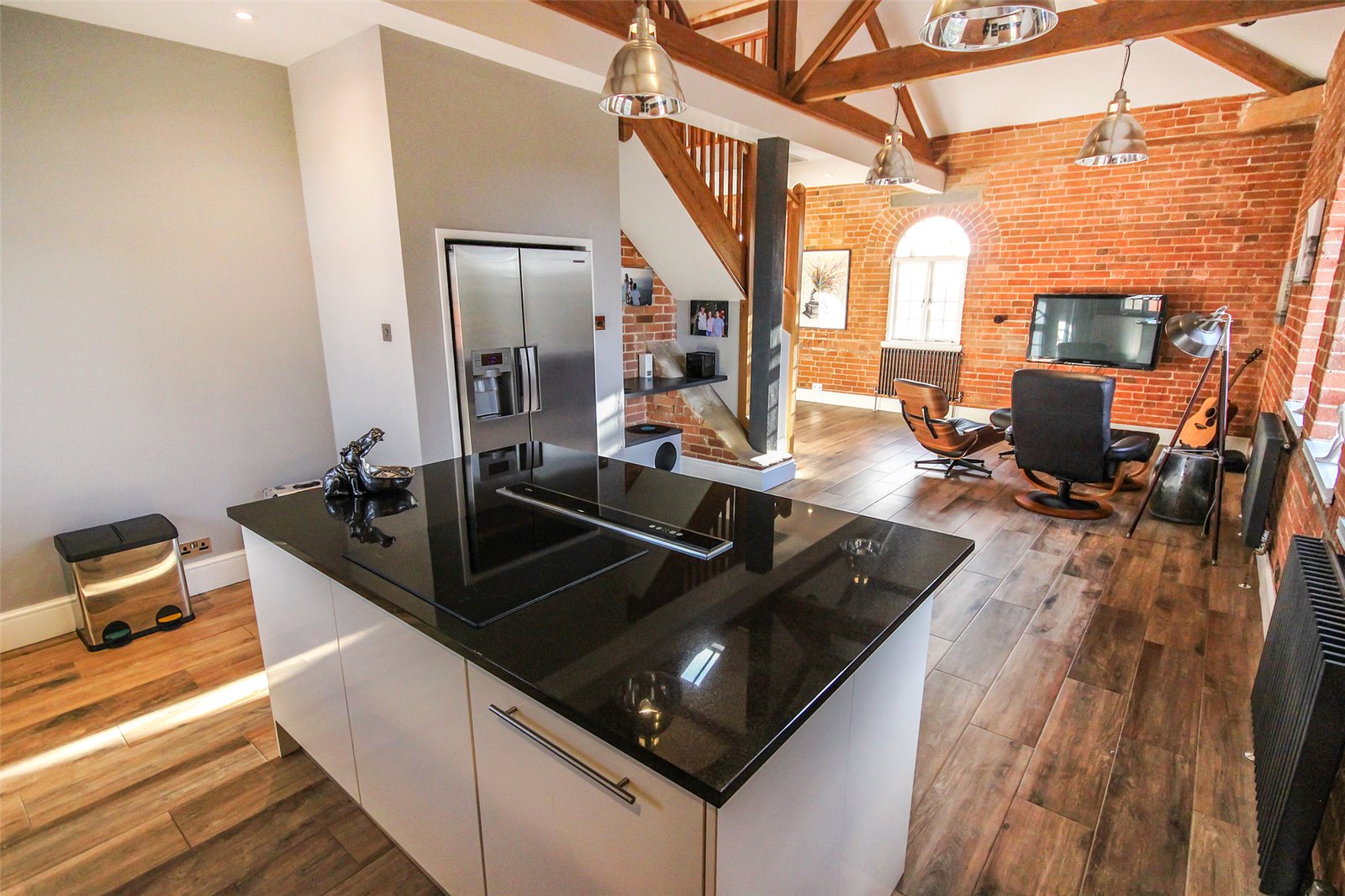 - Open plan kitchen/living/dining area