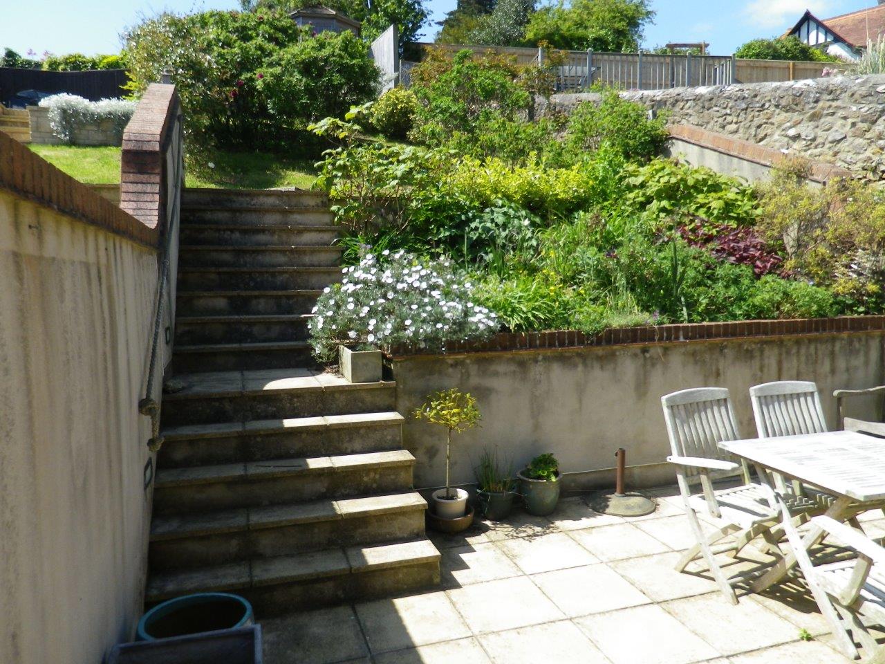 To the front of the property there is a block paviour PARKING SPACE in front of the garage. At the rear there is an attractive, well stocked landscaped terraced garden and a patio area with a SMALL SHED for garden tools. Outside light. Water butt. Steps lead to a terraced garden, where at the top there is a SUMMERHOUSE and a decked area enjoying fine views over Beer to the Church, and in particular to the sea in the distance. At the top of the garden there is a pedestrian gate which leads to rear access to the property.