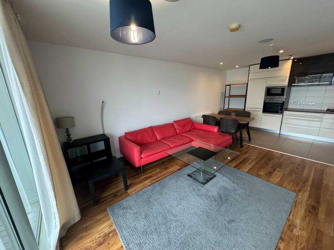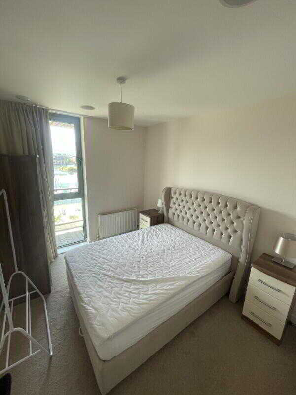 The apartment comprises a large, light-filled open plan lounge & kitchen area, stunning double bedroom with fitted wardrobe and a large modern bathroom suite. The balcony offers elevated views towards the river Lagan.