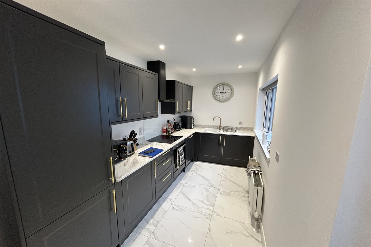 The accommodation comprises two well-proportioned bedrooms, a modern fitted kitchen, a bright and inviting living space, and a separate reception room, providing versatile living options. The bathroom is finished to a high standard, complementing the overall quality of the property.
