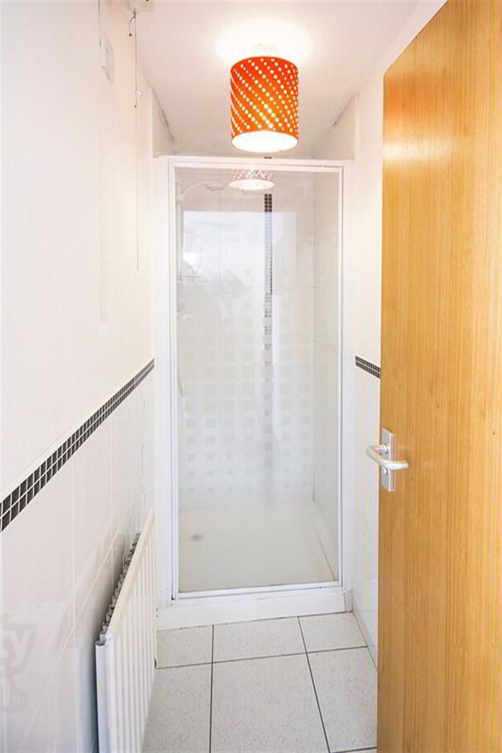 Seperate shower room with full length shower enclosure.