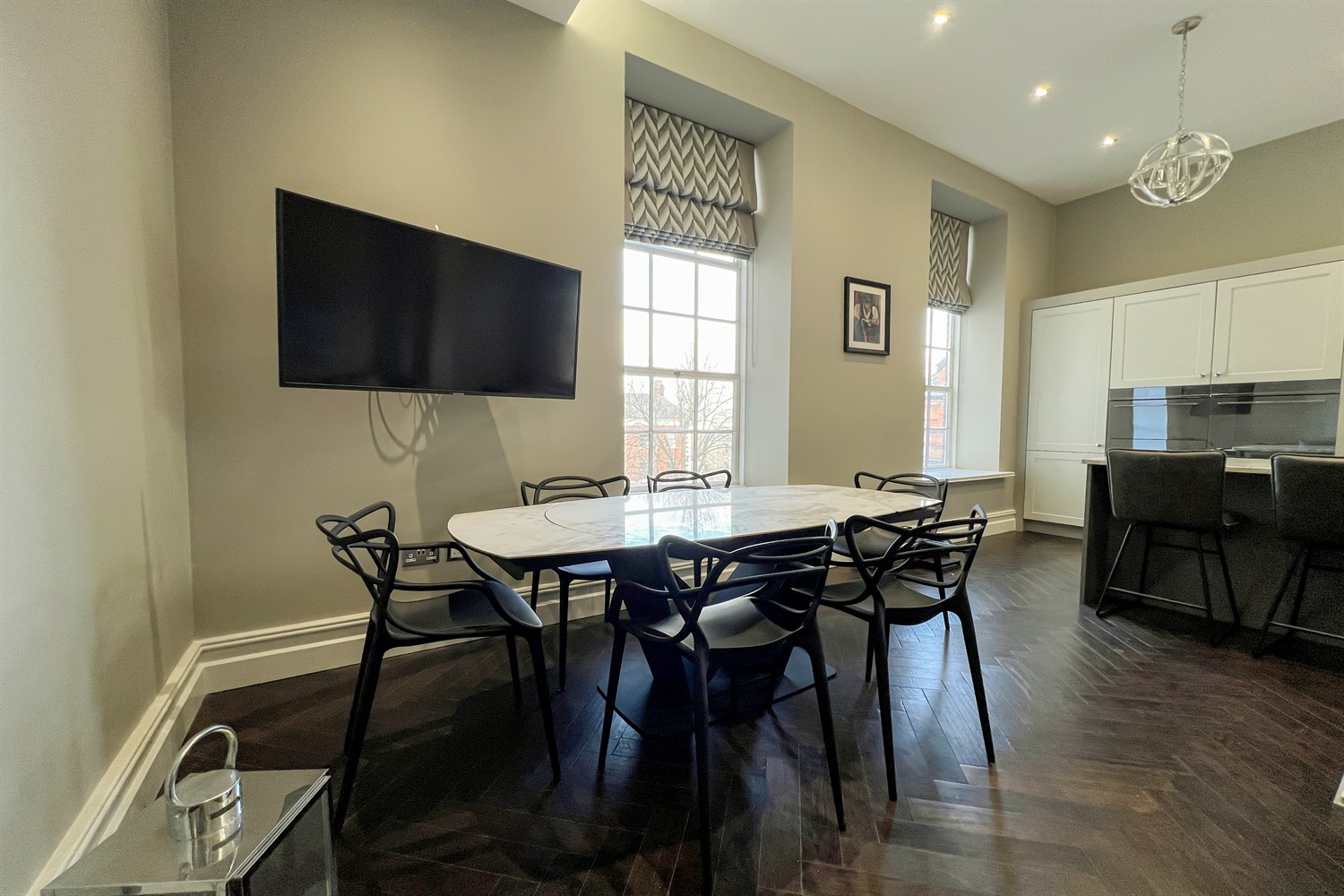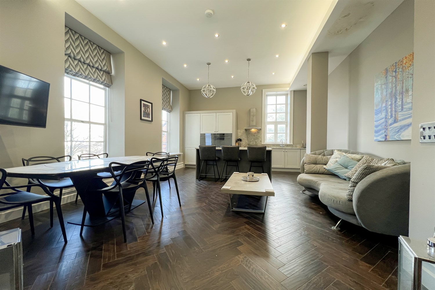 - Huge sash windows for a flood of natural light