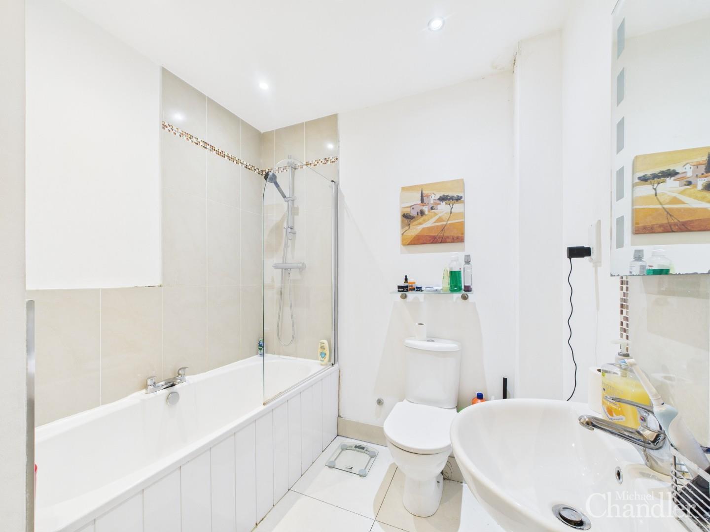 Bathroom with white three piece suite