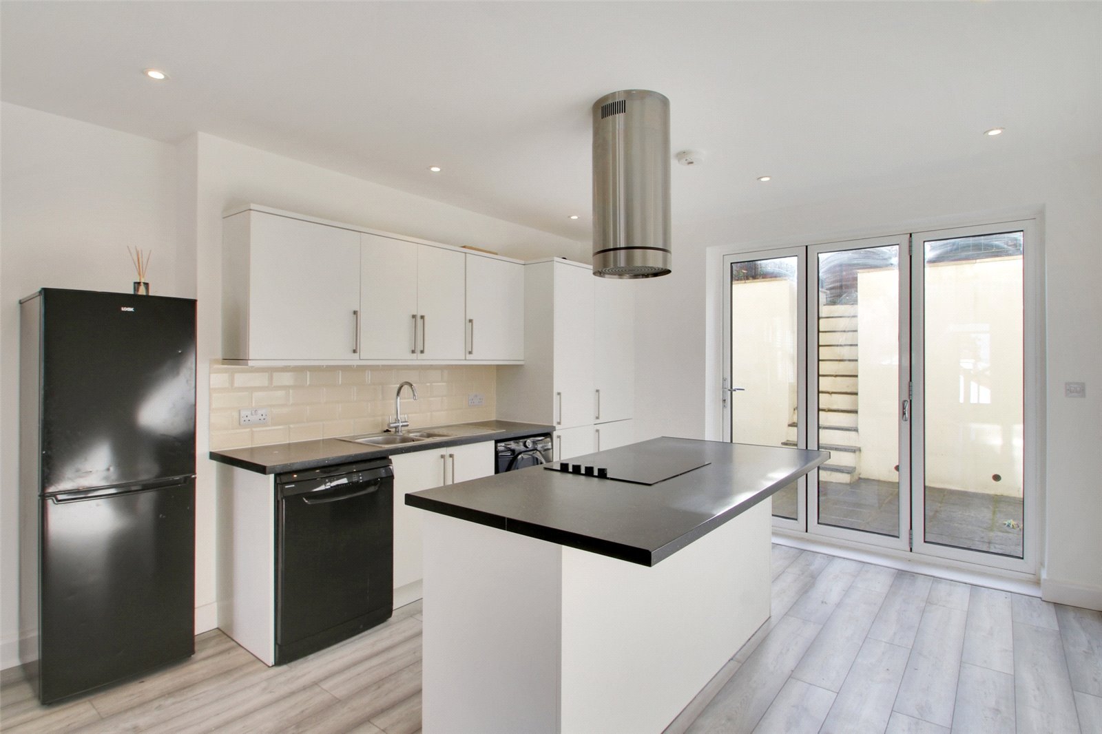 Kitchen Area 11'9" x 10'6" (3.58m x 3.2m). Double glazed triple bi-fold doors to rear. Laminate flooring. Plain ceiling with downlights. Radiator. Fitted white wall and base units with contemporary work surfaces over. Island with ceramic Lamona hob and Lamona stainless steel oven with stainless steel chimney filter hood over. One and a half bowl stainless steel sink and drainer unit with mixer tap. Local tiling to walls. Hoover washing machine. Kenwood dishwasher. Logik fridge/freezer. Cupboard housing Ideal Independent C30 combination boiler.