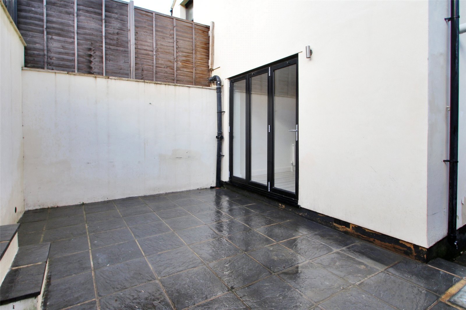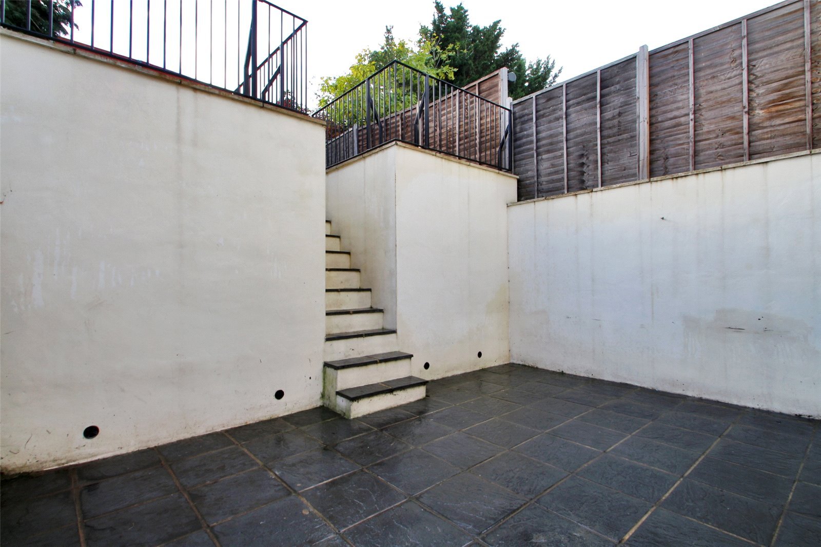 Rear Garden 43' x 17'5" (13.1m x 5.3m). Terrace garden. Paved patio area. Outside tap. Steps leading to artificial lawn area. Walled and fenced with railings.