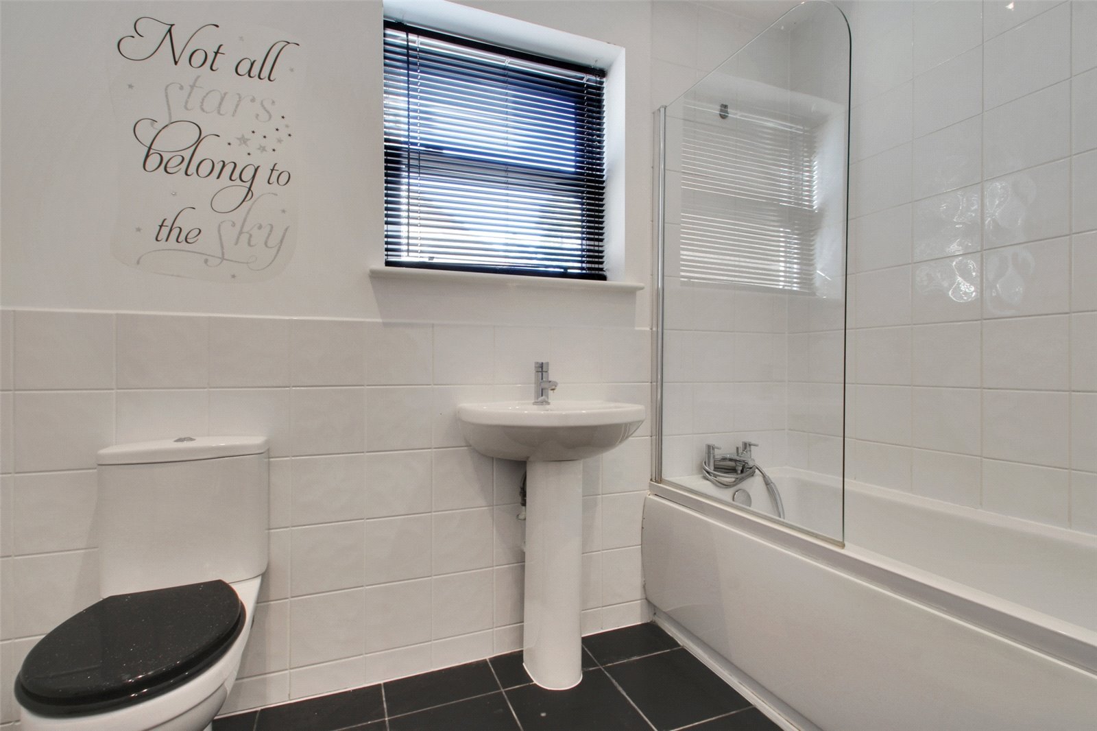 Bathroom 8'9" x 5'5" (2.67m x 1.65m). Double glazed window to side. Tiled flooring. Plain ceiling with downlights. Chrome heated towel rail. Panelled bath with mixer tap and shower attachment with shower screen. Wash hand basin. Low level W.C. Local tiling to walls. Shaver point. Extractor fan.
