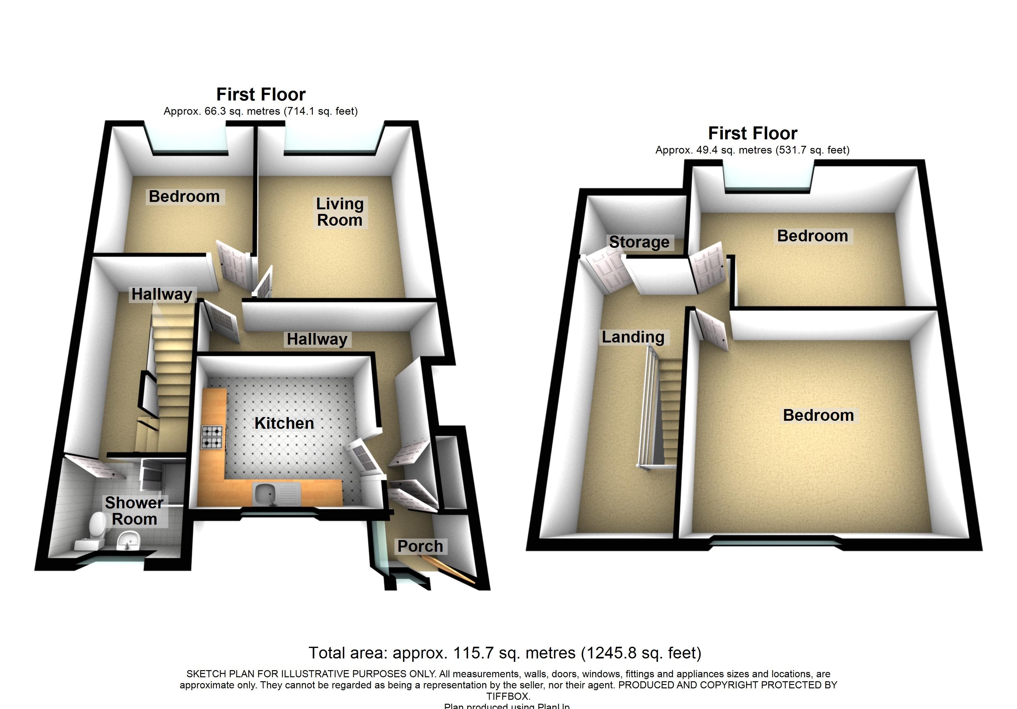 The accommodation on offer comprises; Entrance via the porch, hallway which gives access to the kitchen, living room, first bedroom and shower room. Stairs lead up to the next landing where you will find a further two bedrooms and a built in storage cupboard.