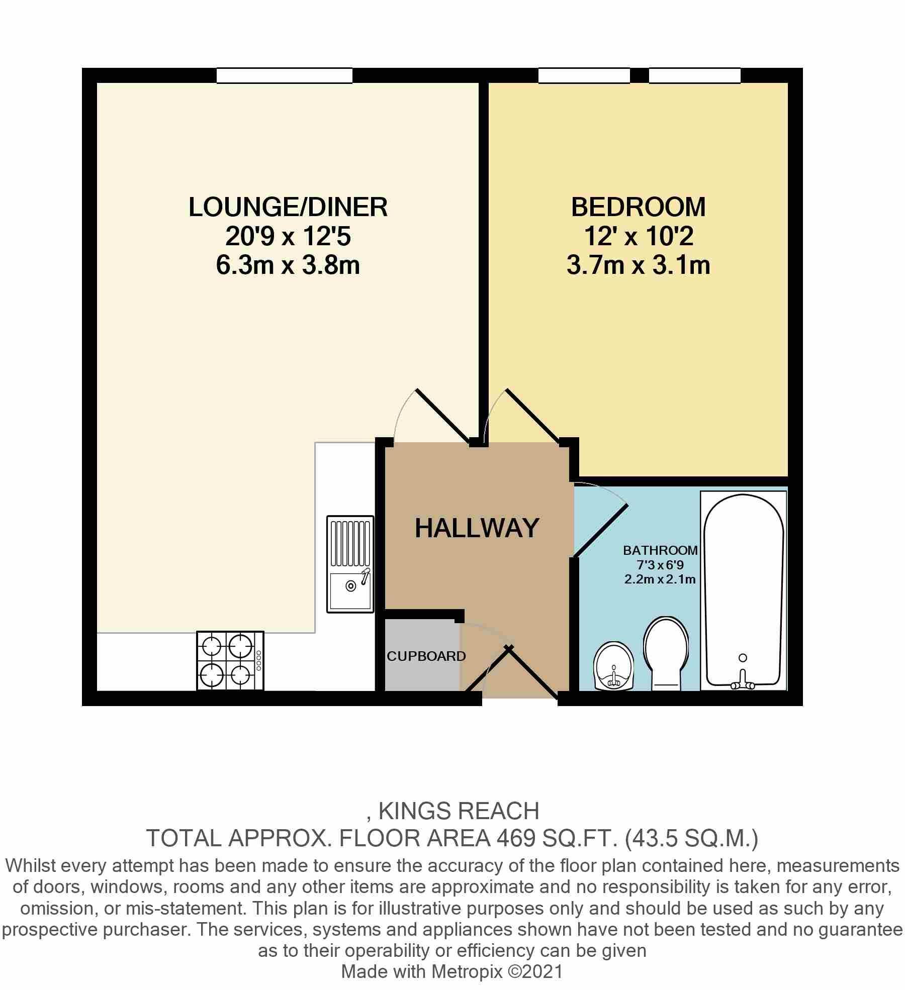The accommodation comprises an entrance hall, open plan reception room with kitchen with integrated appliances, double bedroom with large wardrobe and modern bathroom suite.