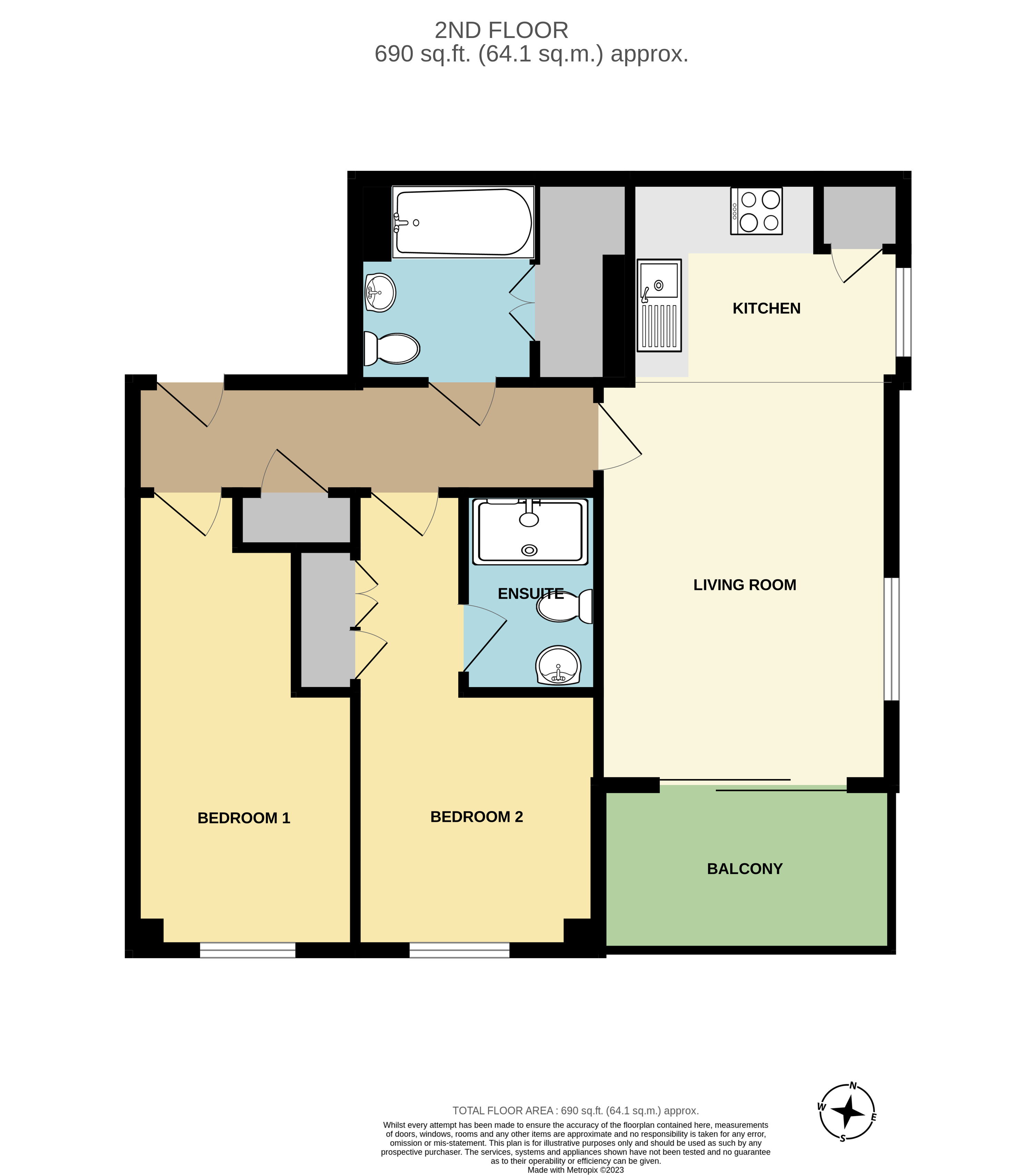 Communal entrance hall with lift access to all floors, entrance door to hallway with storage, living room with open plan kitchen & balcony, two double bedrooms, Access to Concierge.