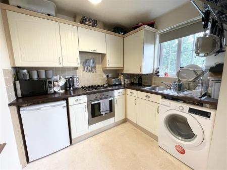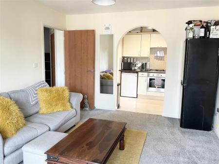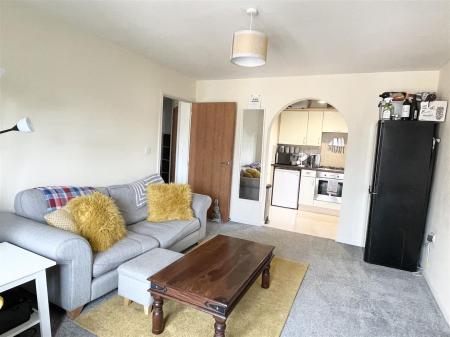 Inside, a welcoming hallway with storage leads into the bright open-plan living and dining space, complete with Juliet balcony. The adjoining kitchen is fitted with modern units, integrated oven/hob and space for white goods.