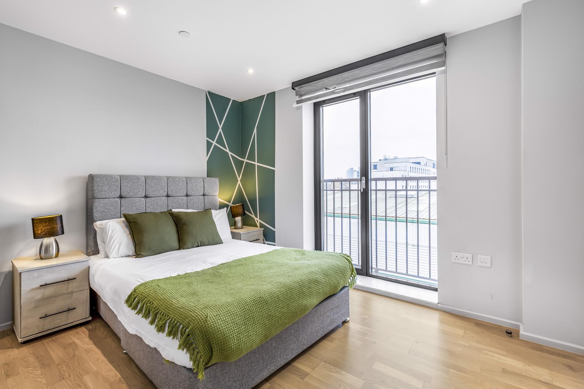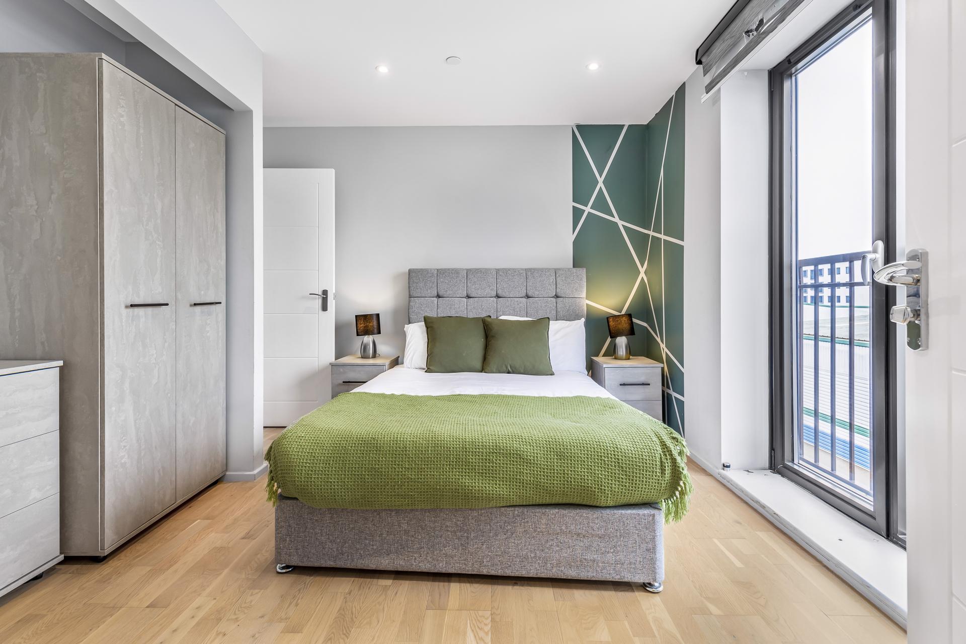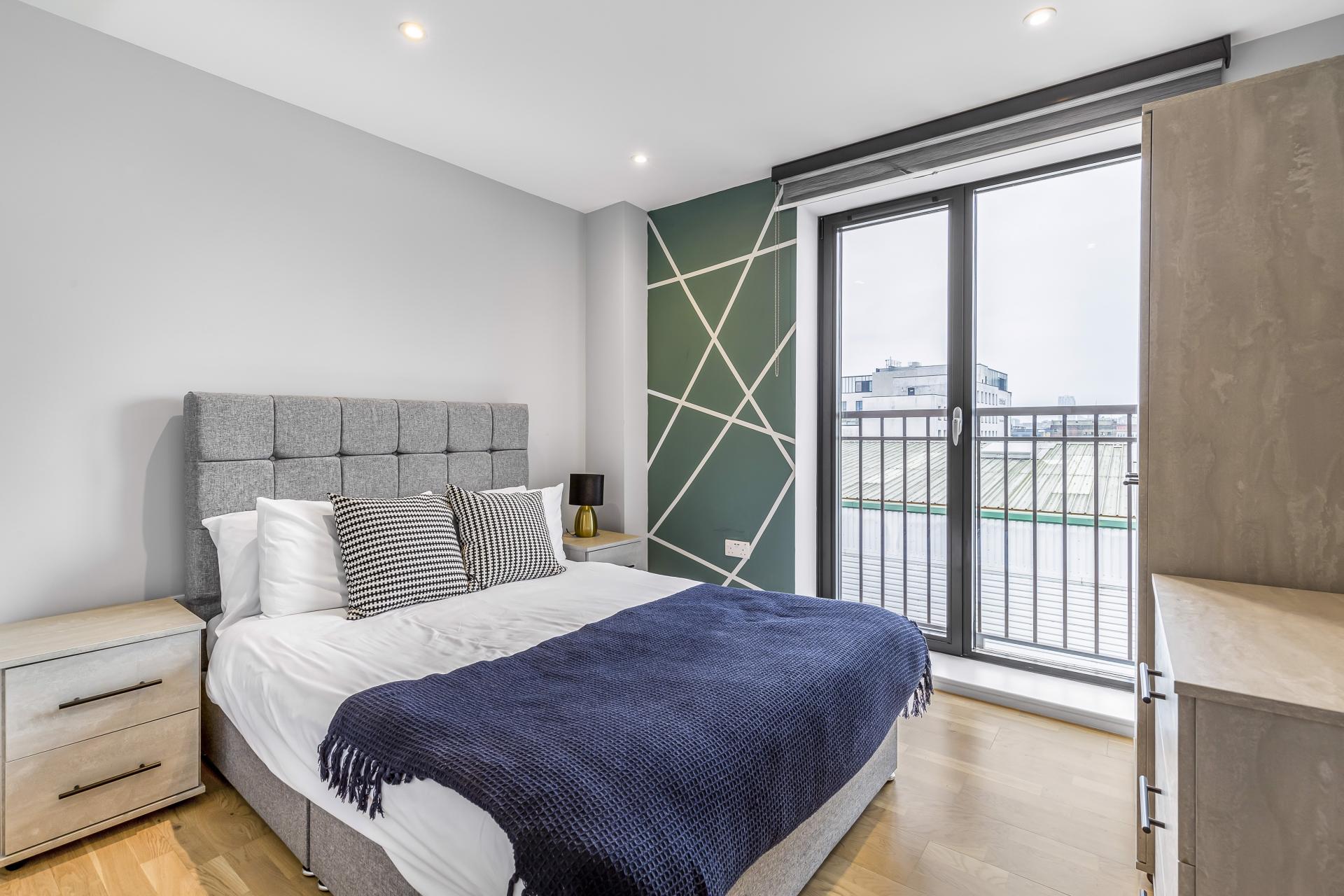 Both bedrooms have a Juliet balcony and the main bedroom