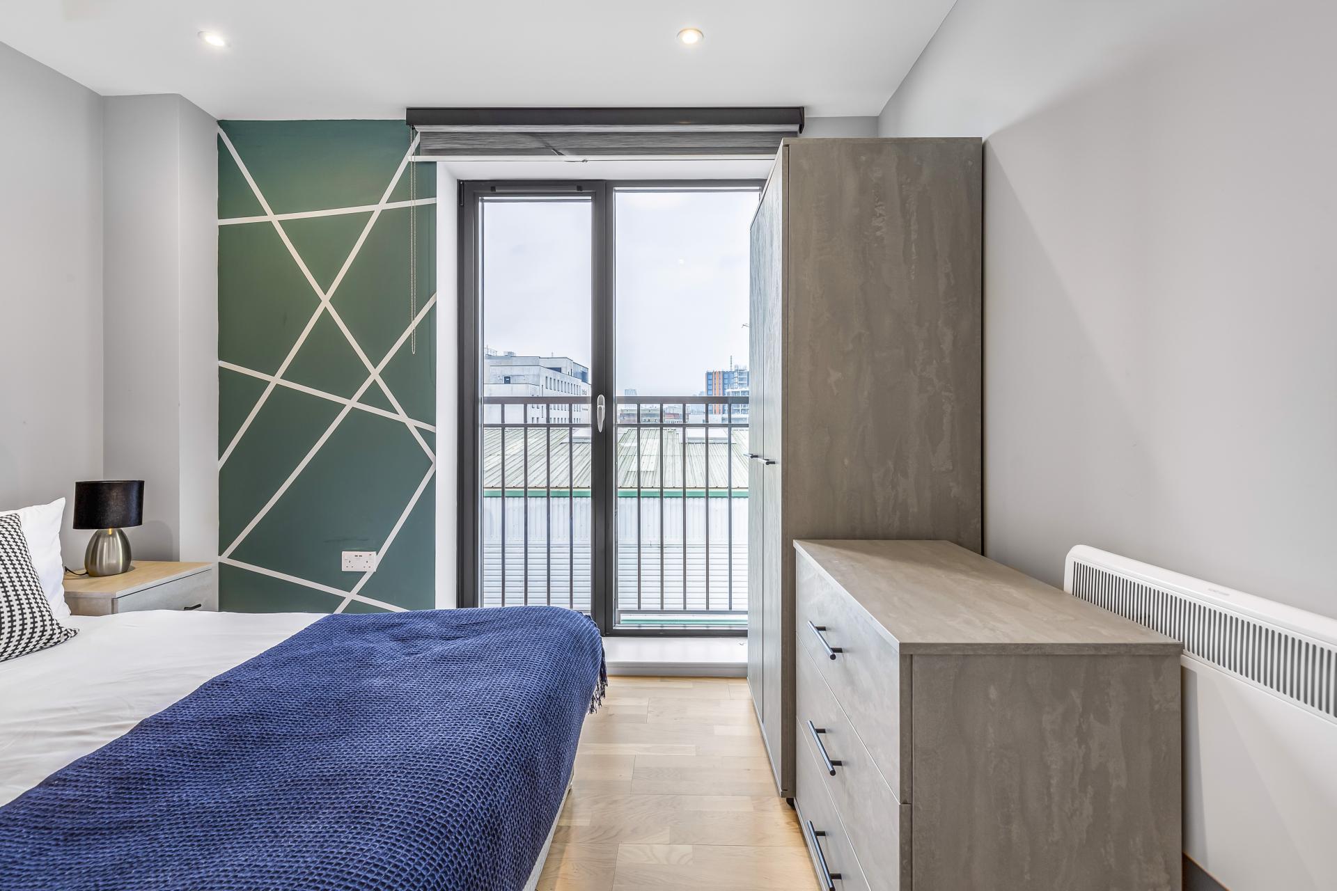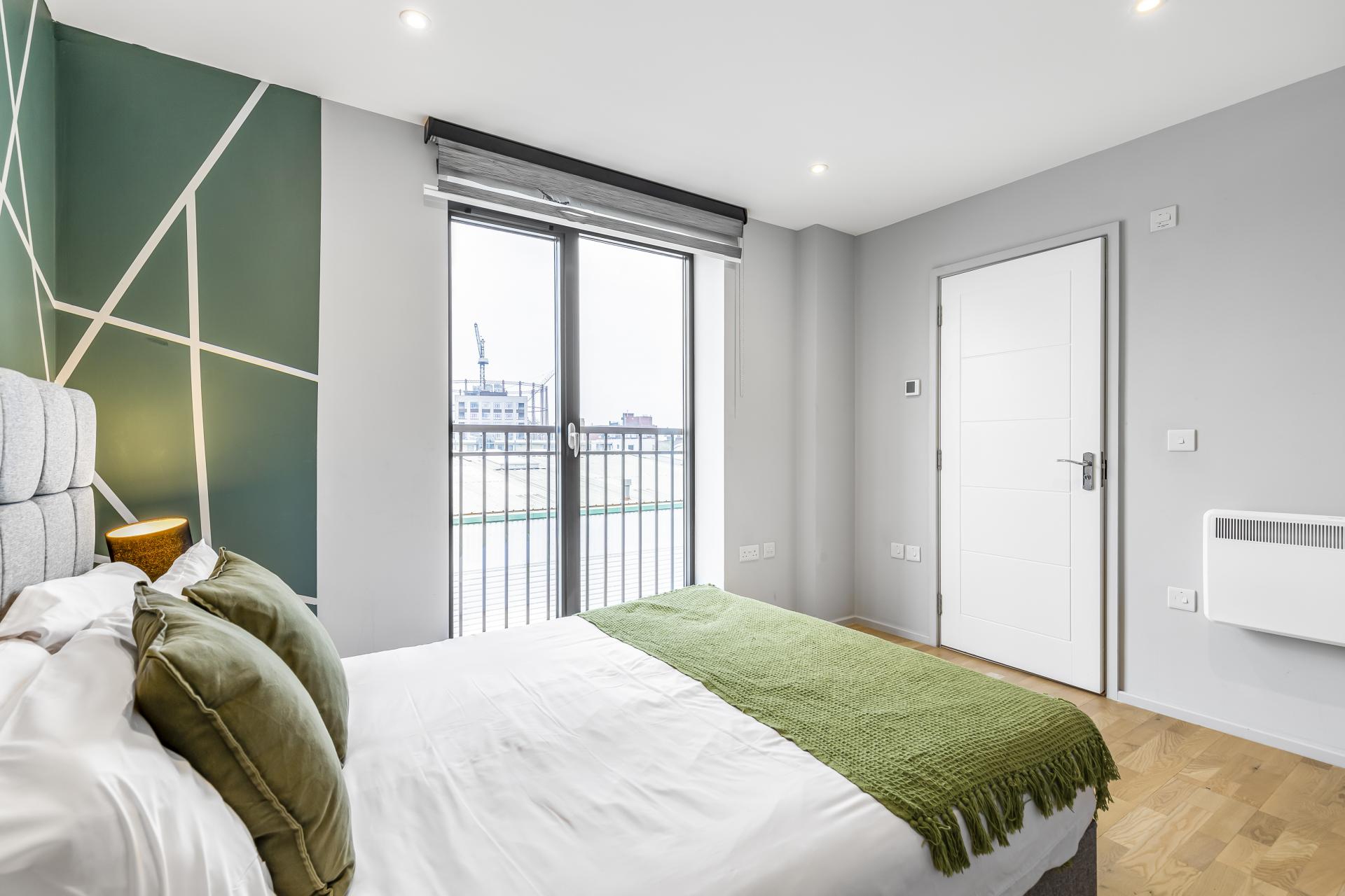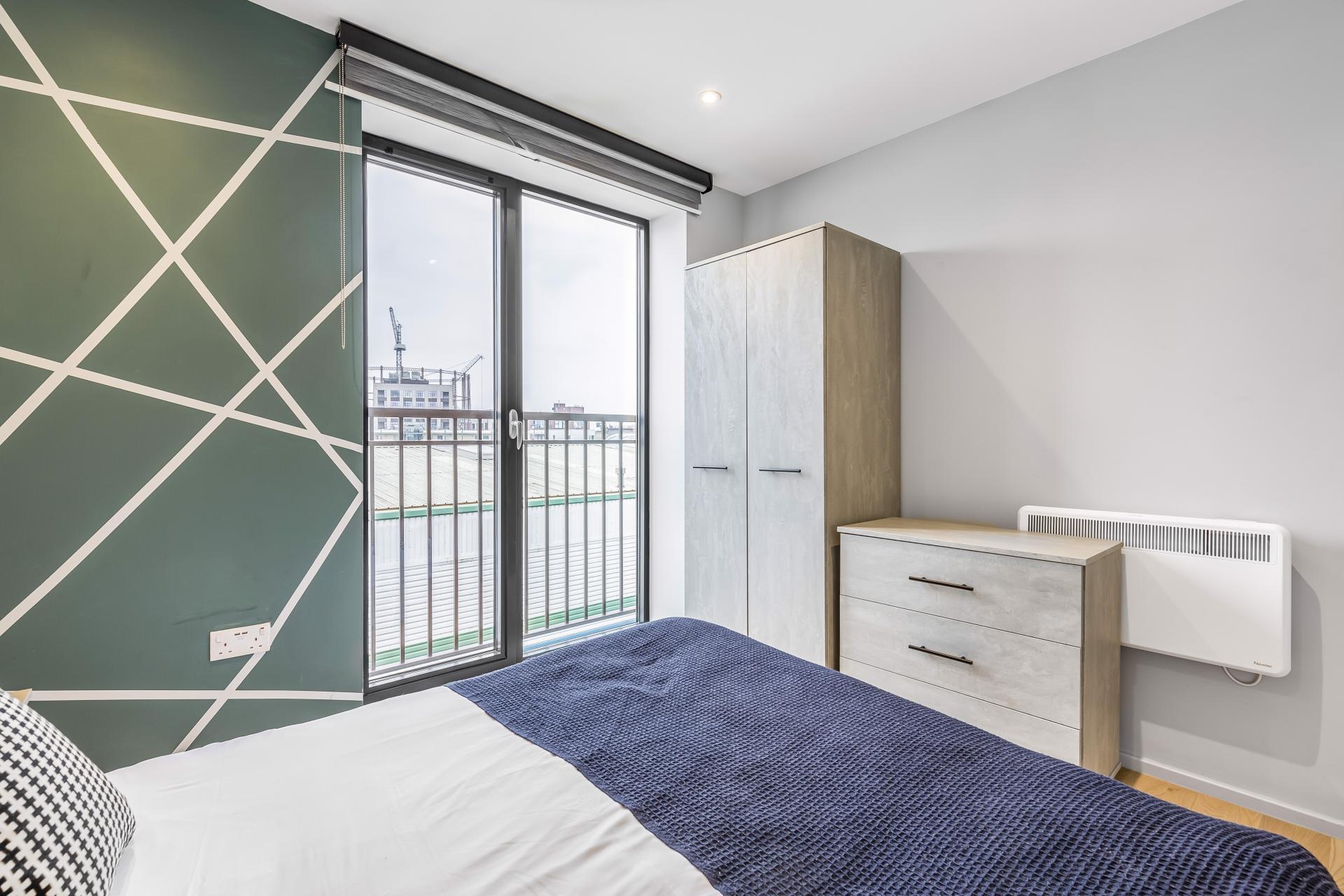 Both bedrooms have a Juliet balcony and the main bedroom