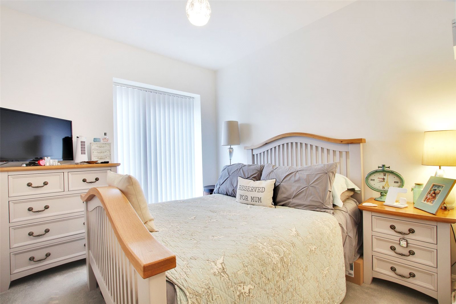 Master Bedroom 10'11" (3.33m) extending to 14'8" (4.47m) x 8'9" (2.67m). Double glazed patio door leading to rear patio terrace. Carpet. Plain ceiling. Radiator. Built-in wardrobe.