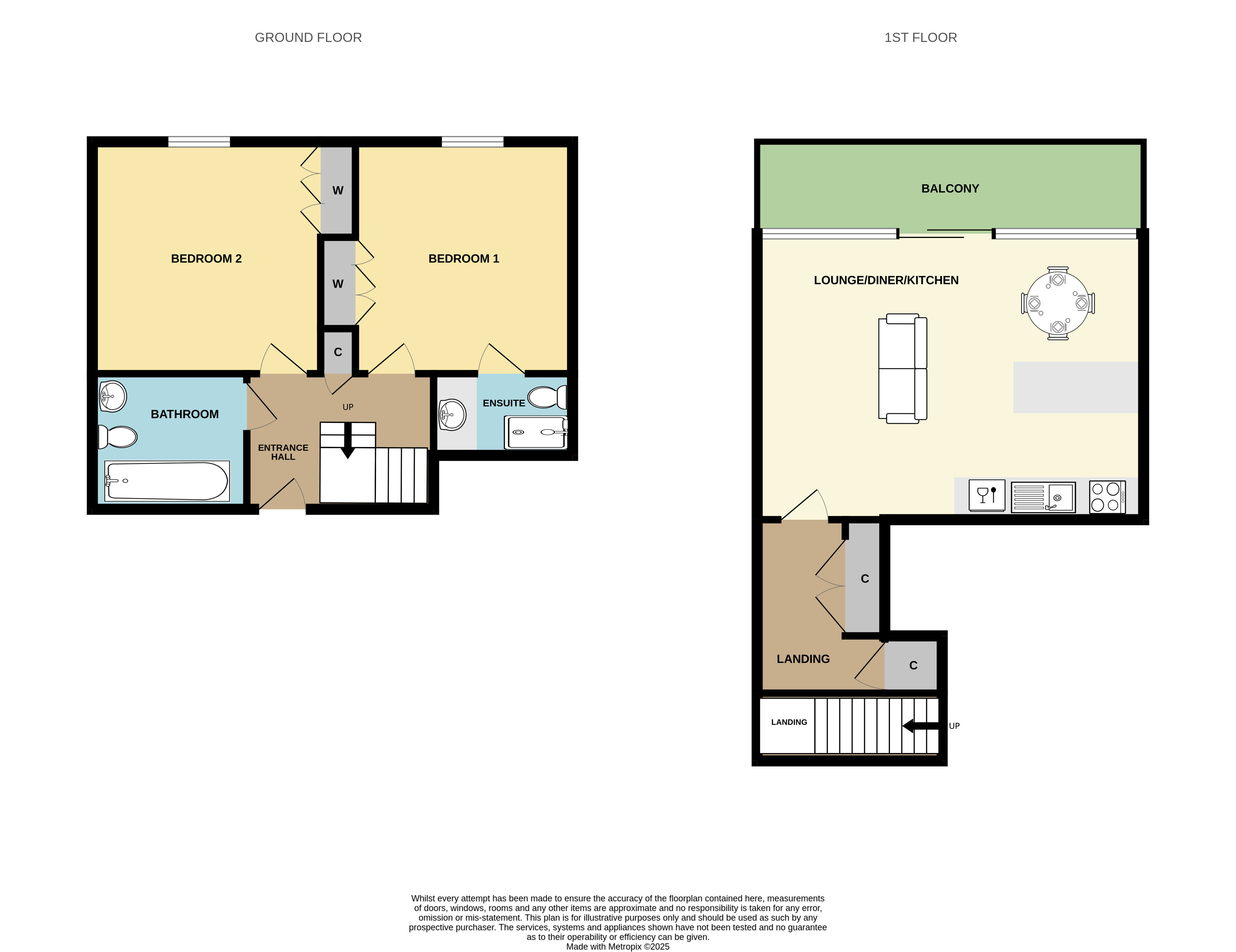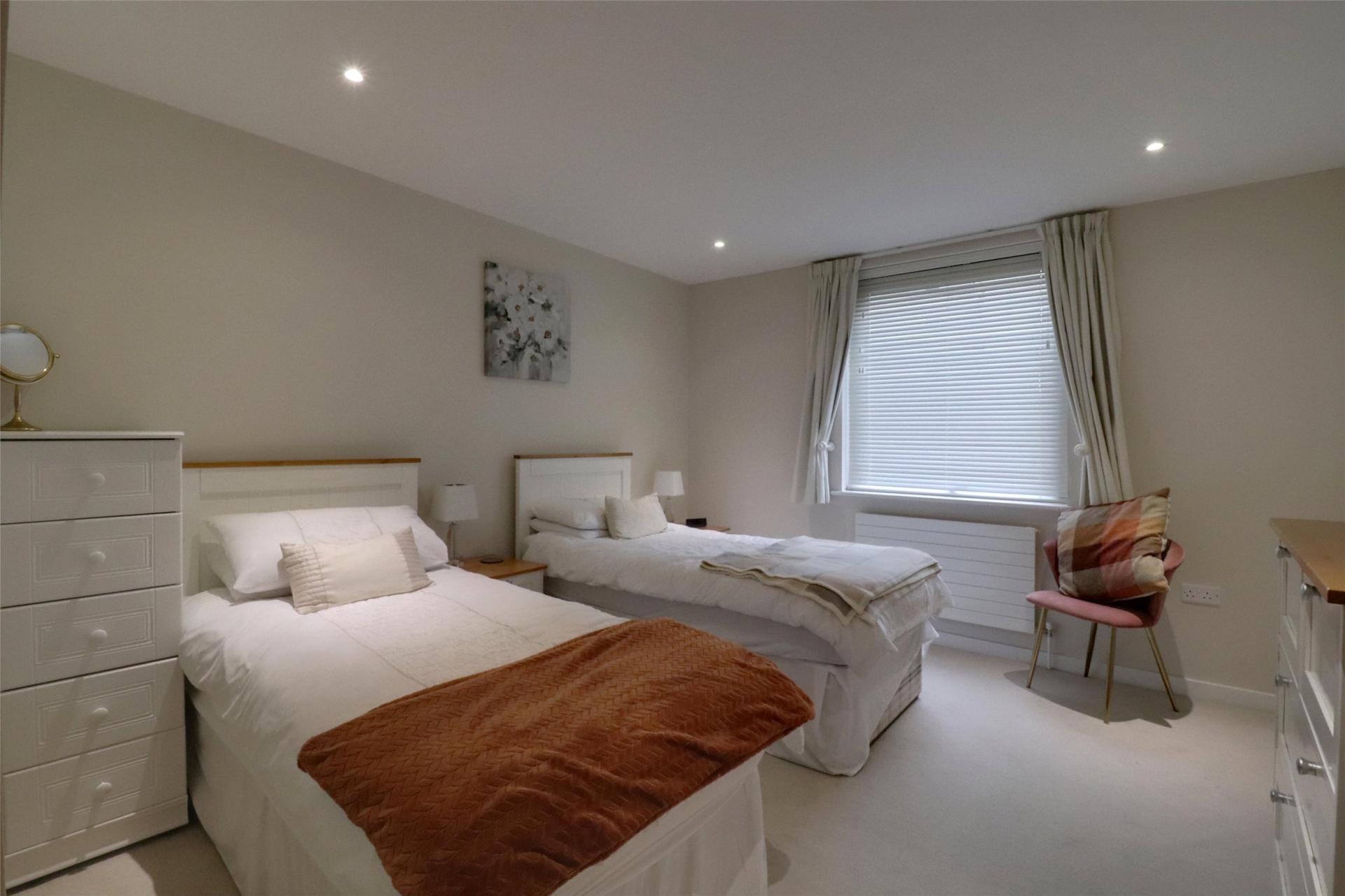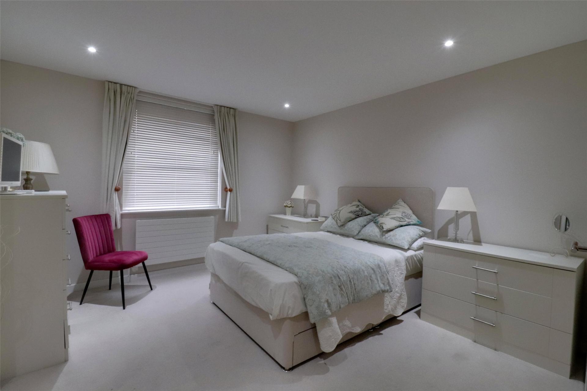 Downstairs, the spacious master bedroom includes fitted wardrobes and an en-suite shower room. There's a second generous double bedroom, also with fitted storage, a stylish main bathroom, and a range of useful storage cupboards, including a dedicated utility cupboard.