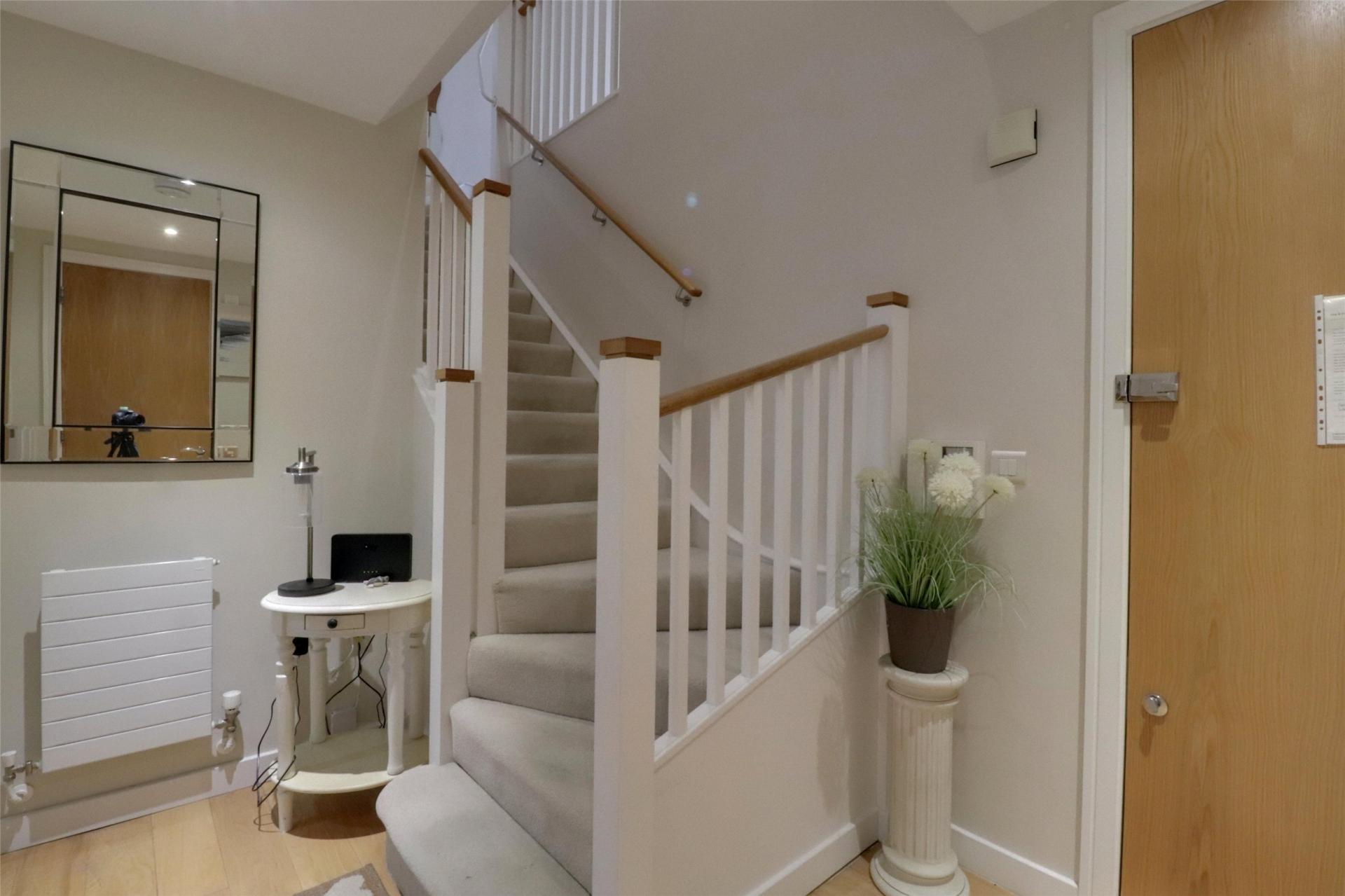 Enter into a well-maintained communal area with secure video entry system, leading to a bright and modern apartment finished in a clean, neutral décor with oak-effect flooring and contemporary fittings throughout.