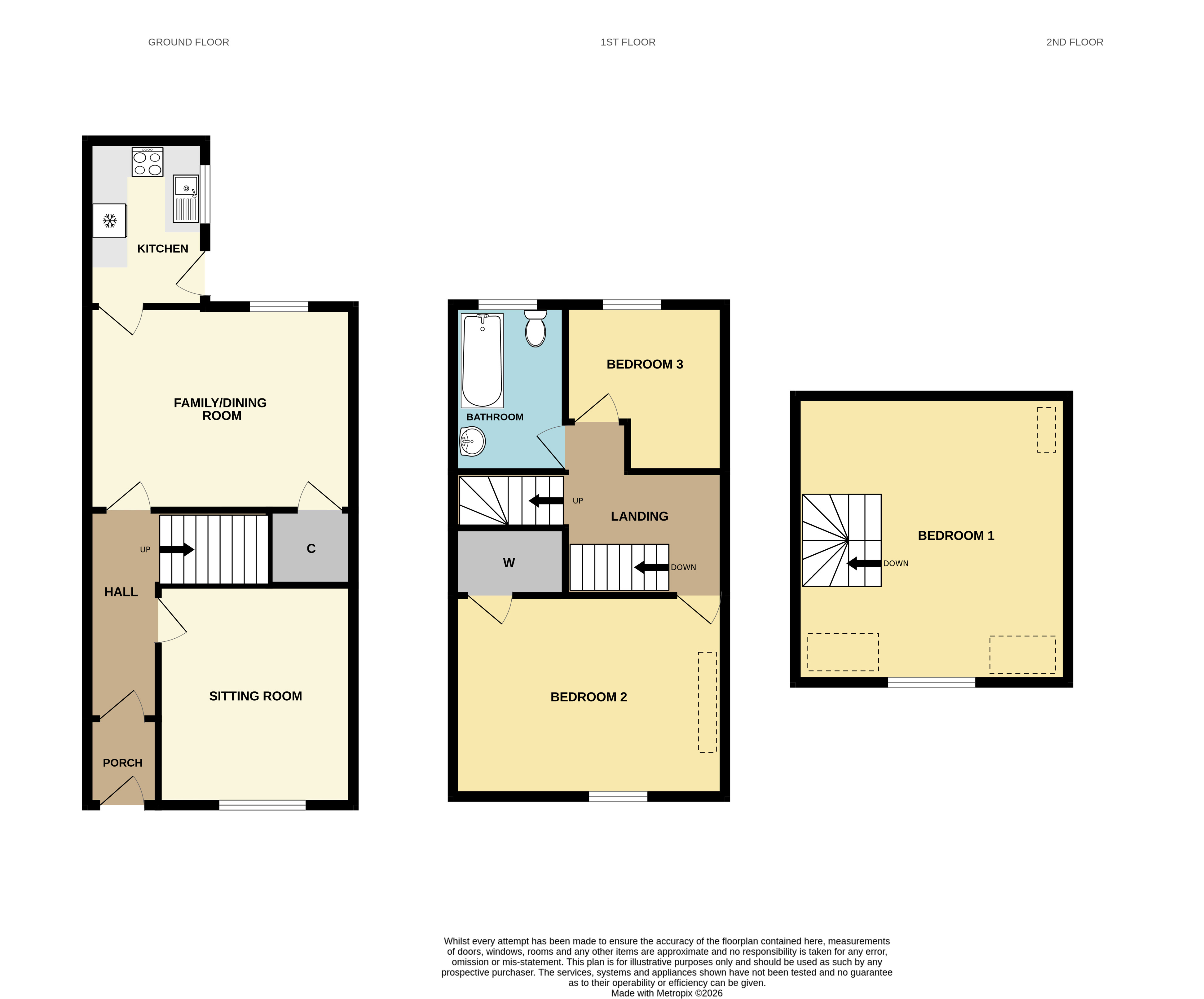 The accommodation includes a welcoming sitting room with a working log burner, perfect for cosy evenings, and a generous family/dining room, also benefiting from a working log burner. The modern fitted kitchen is well equipped with an electric oven, extractor fan and integrated under counter fridge. Additional storage and appliance space is provided by the convenient outside utility cupboard.